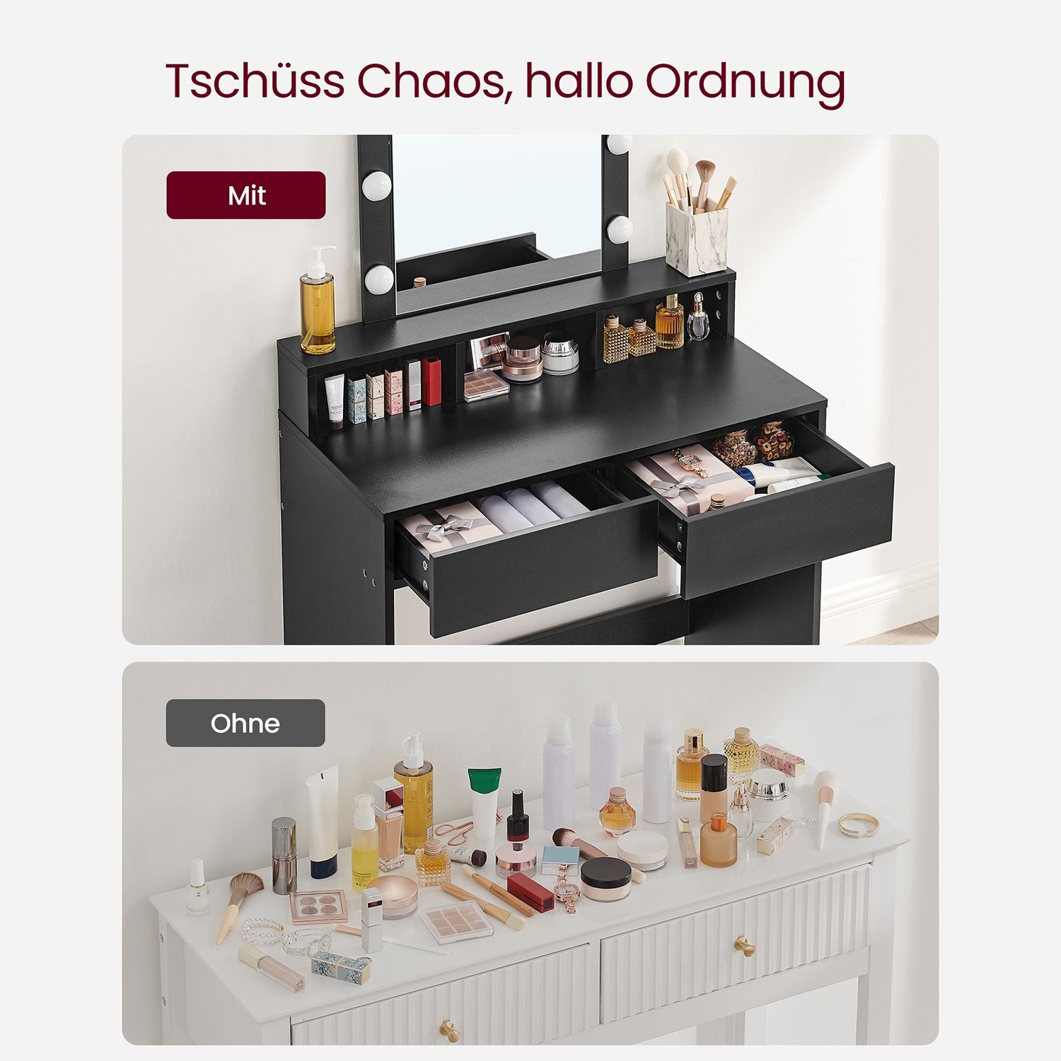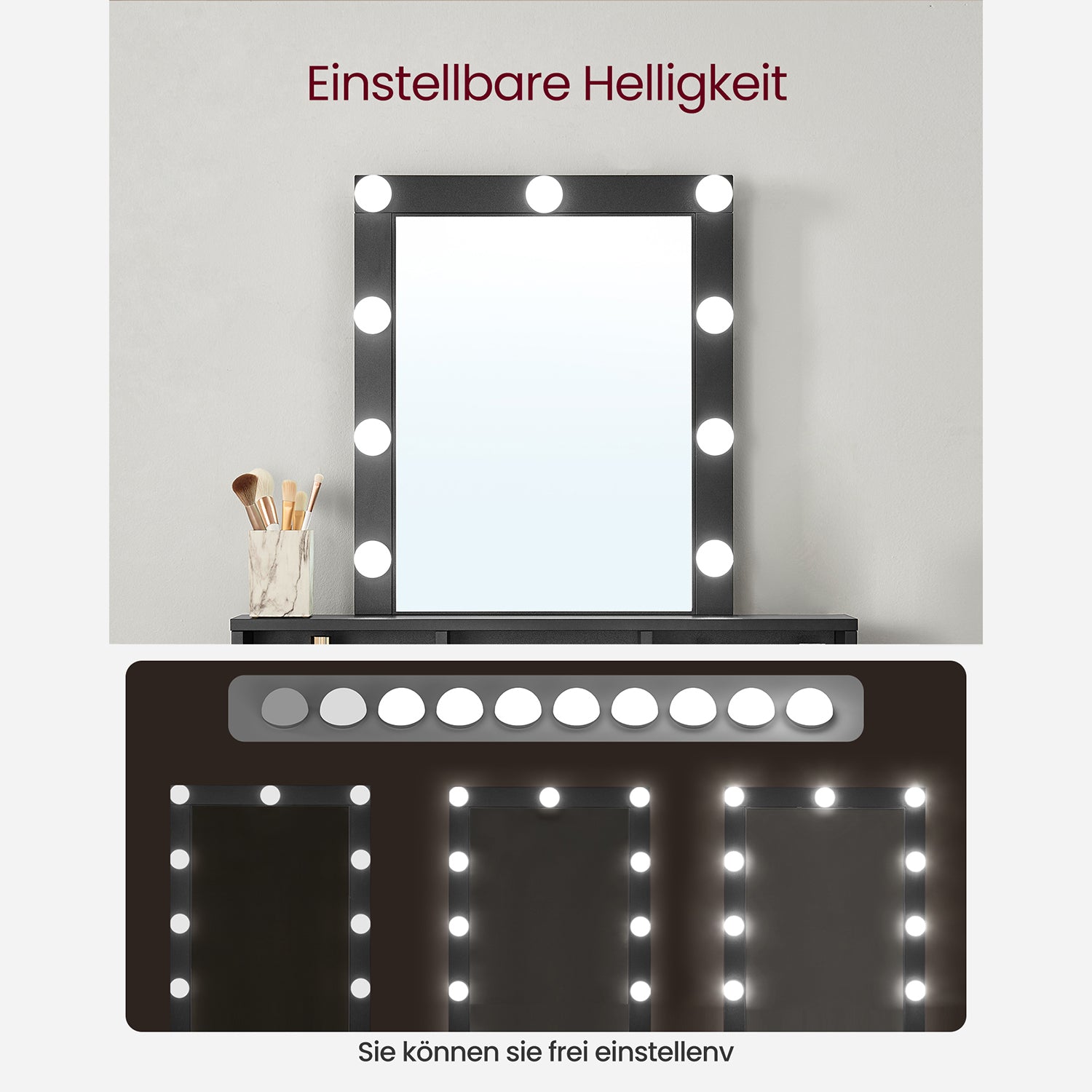 Dette makeupbord er udstyret med 9 justerbare lys, som lader dig kontrollere og tilpasse belysningen præcis som du har brug for. Ved at holde knappen inde kan du nemt justere lysstyrken, så du opnår den ideelle belysning for at lægge en fejlfri makeup under alle lysforhold.