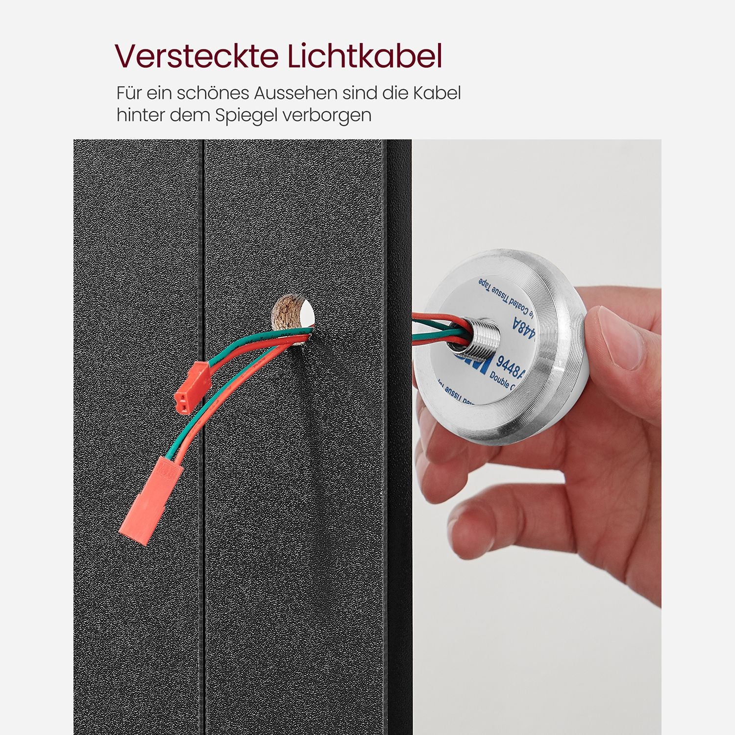 For at øge æstetikken og sikkerheden er ledningerne til lyset skjult bag spejlet, hvilket skaber et renere og mere tiltalende look. Dette makeupbord kommer også med et fastgørelsessæt, der gør det muligt at sikre bordet fast til væggen for at skabe et mere stabilt og sikkert miljø.