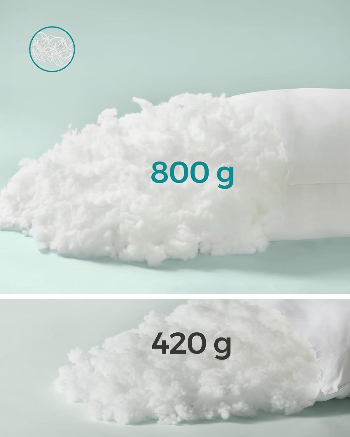 Denne pude er fyldt med en perfekt kombination af 65% bløde 3D polyesterfibre og 35% støttende 7D polyesterfibre, hvilket giver en fyldig og behagelig støtte. Med en fyldvægt på 800g sikrer denne pude, at du får den komfort og støtte, du har brug for til at opnå søde drømme. Uanset om du sover på ryggen, siden eller maven, vil denne pude tilpasse sig din sovestilling og give optimal støtte.