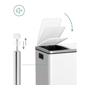 Dette smukke stykke er lavet med robust stål samt holdbar ABS plastik og PP plastik inderste beholderkonstruktion, hvilket sikrer, at den holder i ethvert miljø. Dens hvide farve giver den et simpelt rent udseende, hvilket gør, at den passer ubesværet ind i alle omgivelser. Med tre 18 liters aftagelige rum behøver du aldrig at bekymre dig om udtjente beholdere. Fodpedalen er med til at gøre livet nemt og rodfrit, så du nemt kan komme af med affaldet.