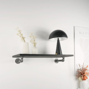 Denne træhylde til væg er skabt til at tilføre et strejf af elegance til ethvert rum. Det sorte vandrør kombineret med træhylden skaber en tidløs æstetik, der smelter sammen med enhver indretningsstil. Med en dybde på 40 cm er der rigelig plads til at vise alt lige fra dine yndlingsbøger til smukke dekorationer. Den er ikke bare en hylde, men en samtalestarter, der udstråler klasse og funktionalitet.
