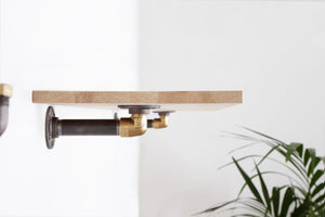 Eksklusiv sort med messing metal hyldeknægt med tidløs træhylde