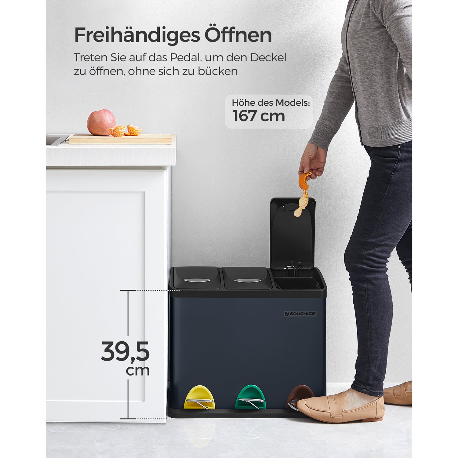 Gør genbrug til en leg med vores skraldespand, der er udstyret med tre farvekodede pedaler. Hver pedal åbner en separat sektion, så du nemt kan sortere dit affald i forskellige kategorier – perfekt til at lære børnene om genbrug eller gøre det lettere for voksne at holde orden. De farvekodede pedaler hjælper dig hurtigt med at identificere den rigtige sektion og reducere rengøringsarbejde.