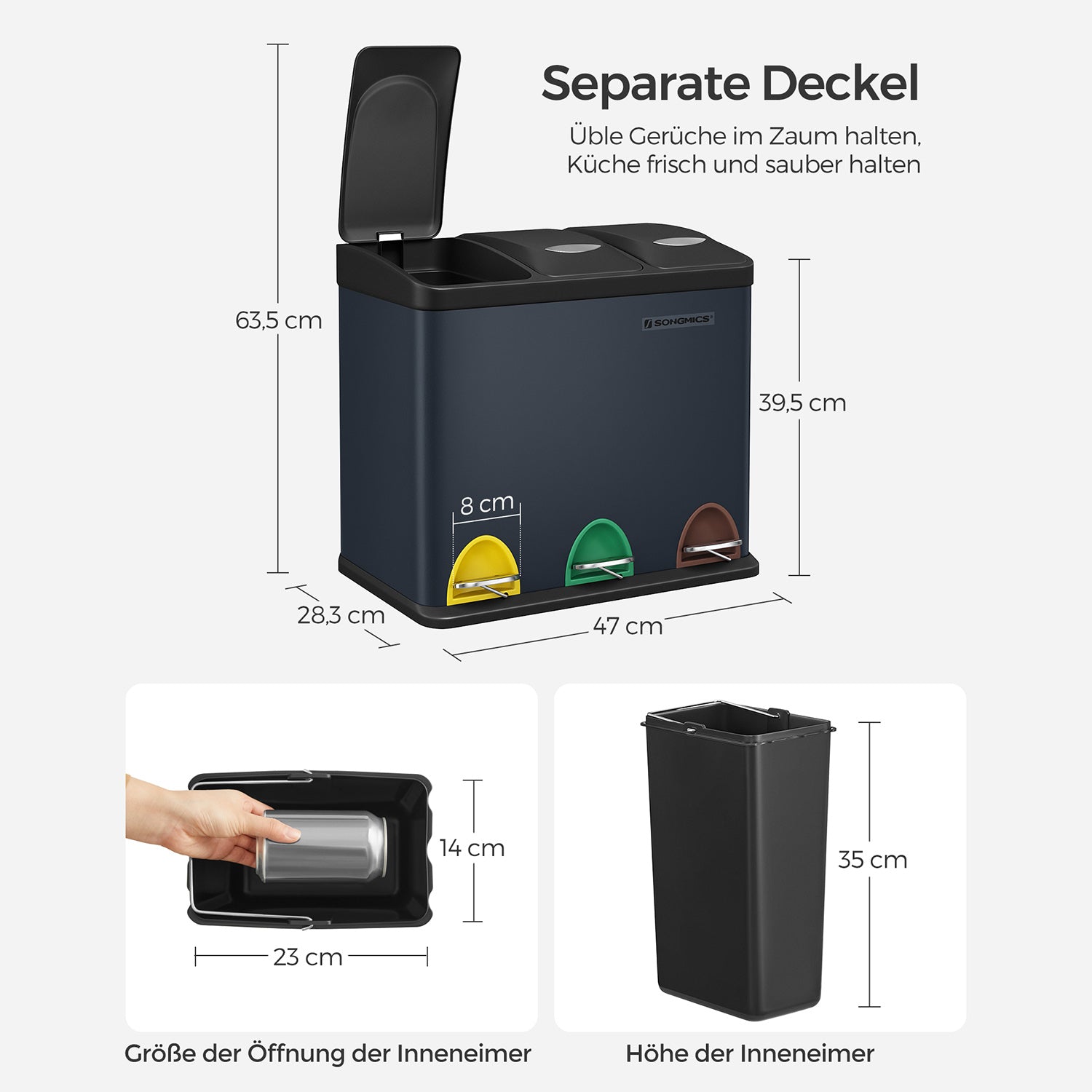 Sig farvel til din slidte affaldsspand og byd velkommen til vores elegante 3-i-1 skraldespand, der bringer stil og funktionalitet til dit køkken, kontor eller garage. Denne skraldespand er designet til at gøre affaldshåndtering enkel og effektiv. Med en robust stålramme og et moderne, smoky grey finish, er denne skraldespand både holdbar og et attraktivt valg for ethvert rum.