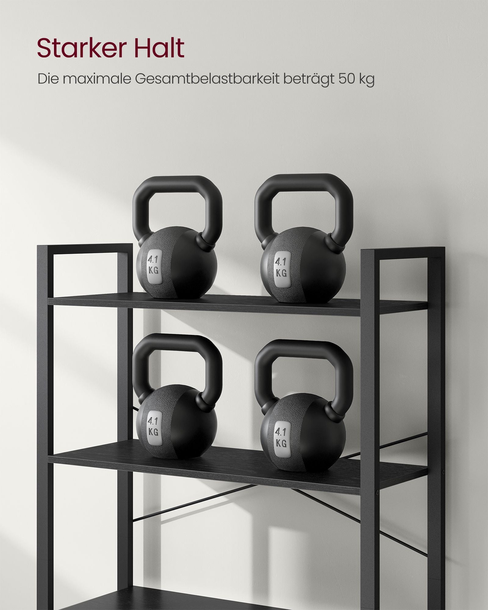 Skabt til at holde, kombinerer denne stigereol kvalitets spånplader med en robust stålramme for en maksimal vægtkapacitet på 50 kg. Den solide konstruktion lover mange års pålidelig brug, hvilket gør denne reol til en varig investering i dit hjem. Uanset om du opbevarer tunge bøger eller dekorative genstande, kan du stole på, at denne reol kan klare opgaven.