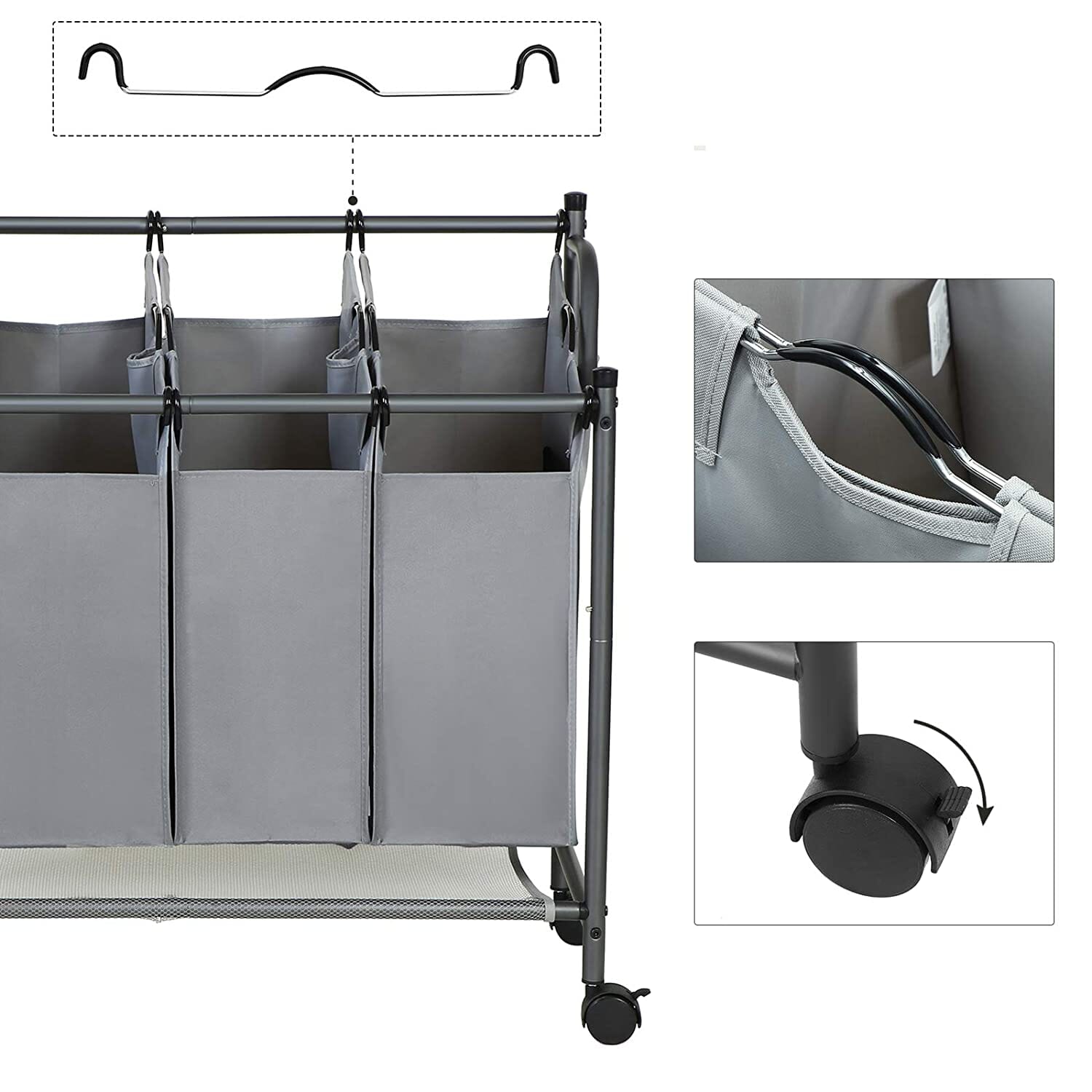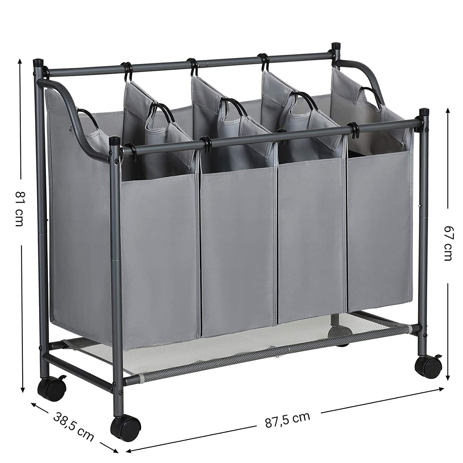 4 sektioner, vasketøjssortering gjort enkel: Hver pose holder dit tøj sorteret efter farve eller type, så du hurtigt kan gå fra en læs til den næste. Lad denne vogn gøre din vaskedag lettere.