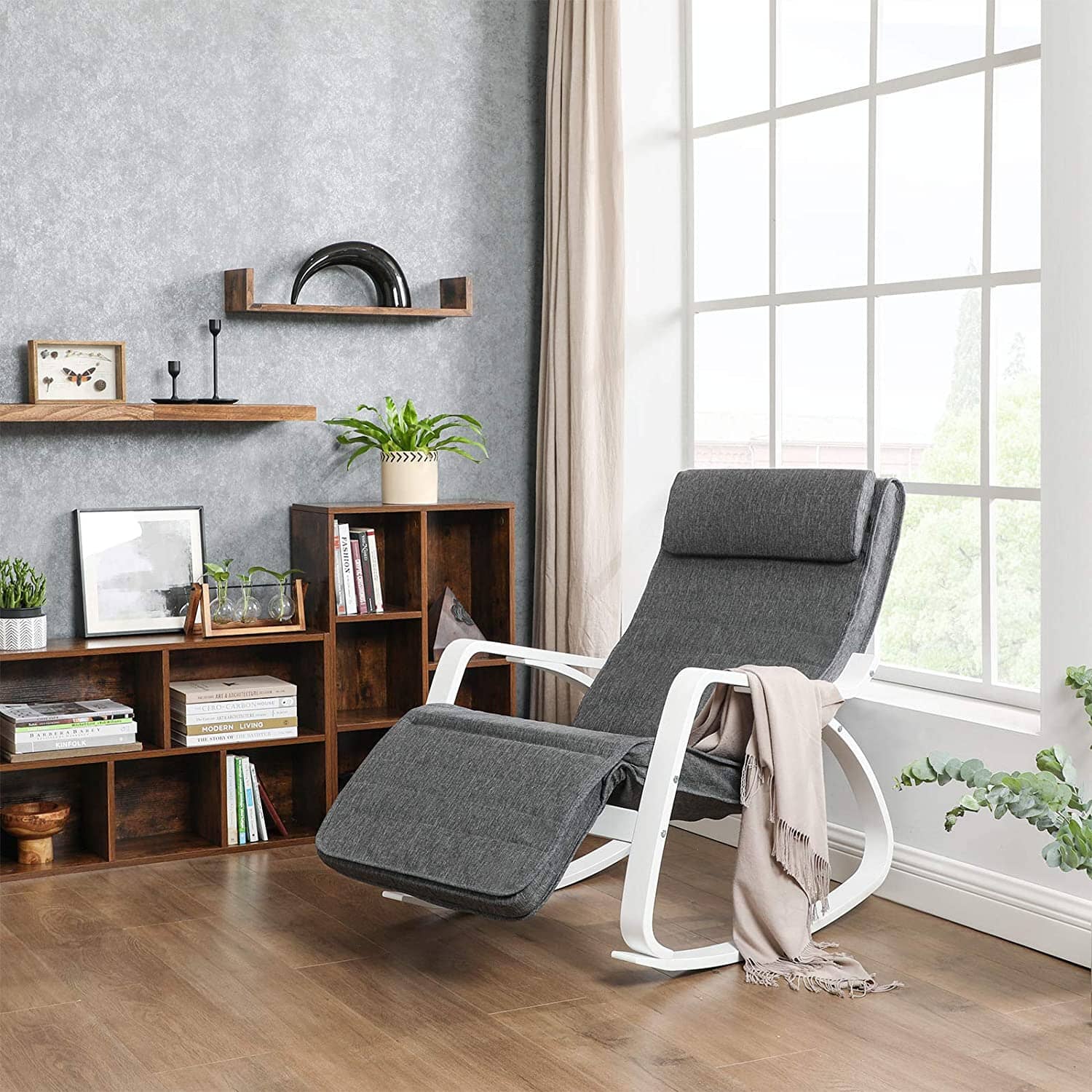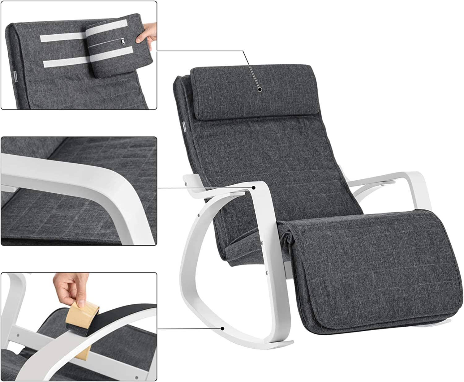 Forkæl dig selv med lidt fred - sving dig i denne gyngestol med 5 justerbare fodstøtter, birketræ og metalramme. Nyd en hyggelig eftermiddag med bøger, kaffe og småkager, mens du føler dig helt afslappet.