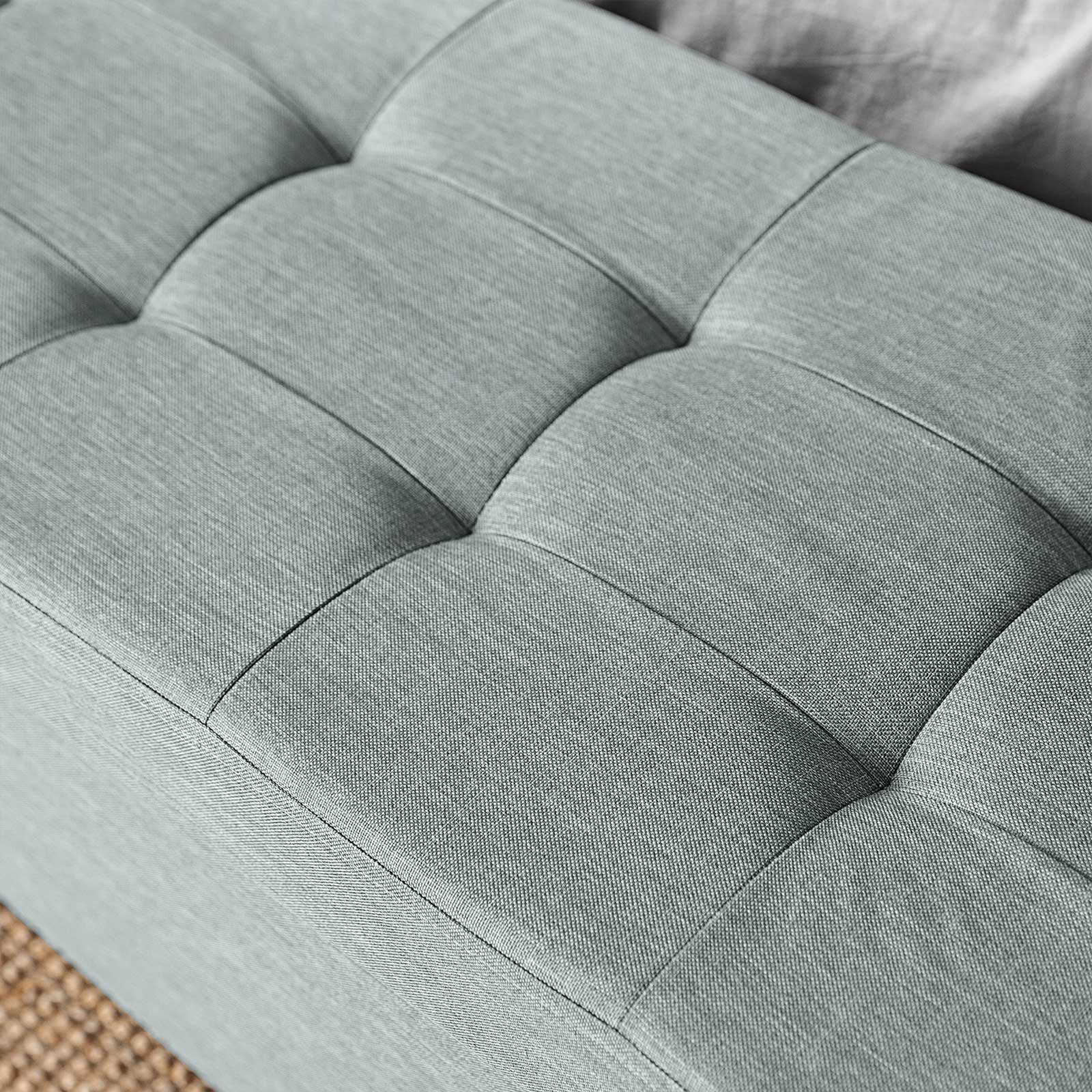 Ikke blot en smuk tilføjelse til din sofa, denne opbevaringsbænk tilbyder også en overraskende komfort med sin 5 cm tykke polstring, langt over standarden på 2,5 cm. Bænken tilbyder også 65 liter opbevaringsplads under låget, hvilket gør den ideel til at gemme tæpper, sengetøj eller andre ting, du ønsker at holde ude af syne, men let tilgængelige.