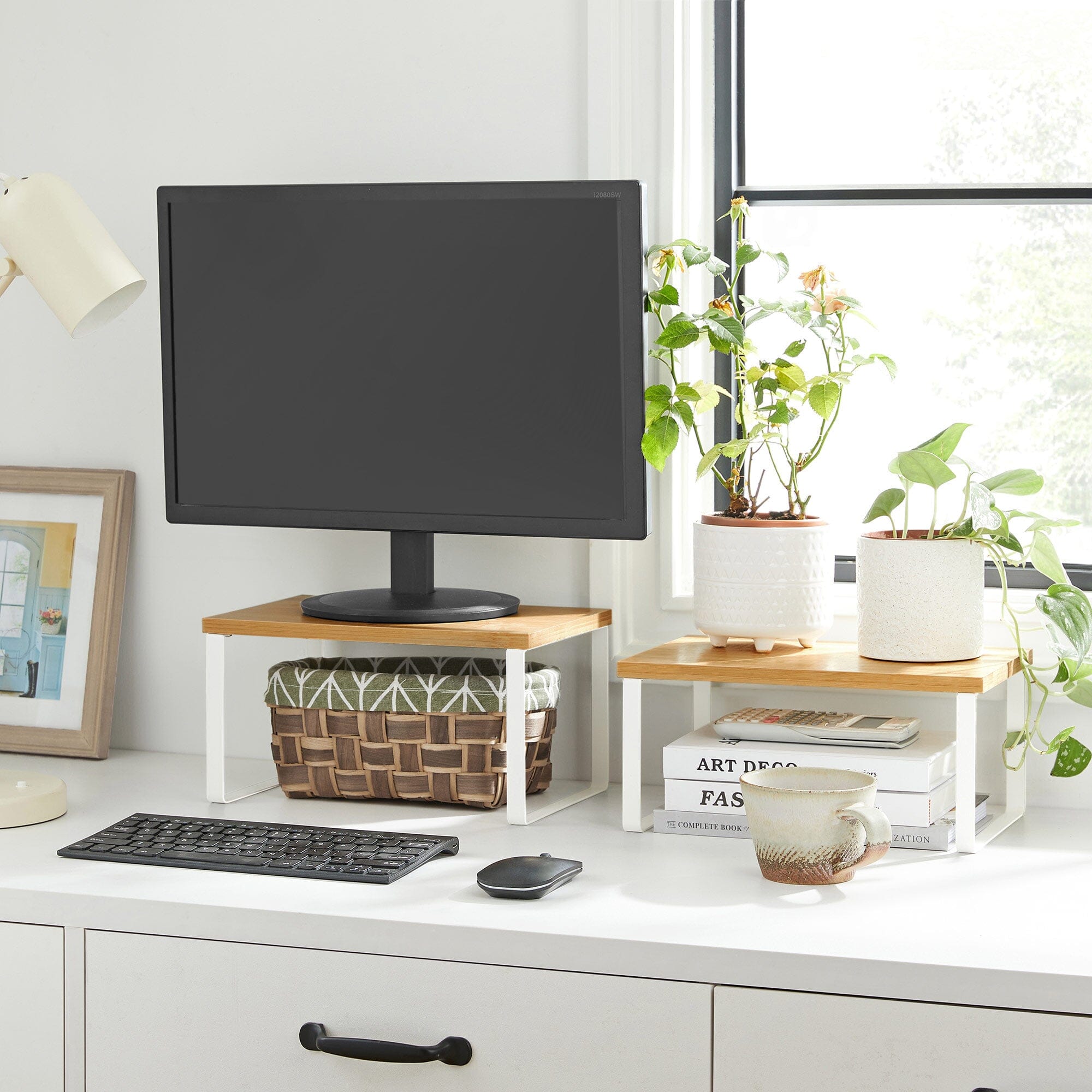 Stilfulde og praktiske, disse hylder er en iøjnefaldende tilføjelse til dit køkken! Med naturlig bambus og stærke metalrammer giver de dig friheden til at stable dem eller sætte dem i L-form - tilpas dem efter dine præferencer.