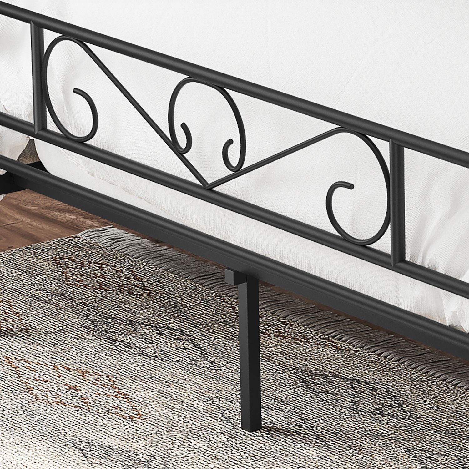 Gør dit soveværelse til et stilfuldt tilflugtssted med denne seng. Den enkle silhuet kombineret med elegante mønstre på fodgærdet og hovedgærdet giver dit rum et sofistikeret præg, uden at sprænge budgettet. Med dimensionerne 198 x 141,8 x 86,4 cm passer denne seng perfekt til en madras på 140 x 190 cm (medfølger ikke), hvilket gør den ideel til rum med begrænset plads, uanset om du går efter en moderne minimalistisk eller en mere industriel stil.