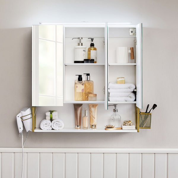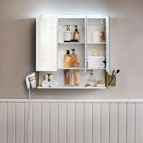 Lys op og gør din morgenrutine nemmere med den lange LED-lampe, der er integreret i skabet. Dette lys giver et klart dagslys, så du kan se detaljerne og få en fejlfri make-up på – hver gang. De tre spejle i høj kvalitet gør det muligt at style dig selv fra flere vinkler og giver dig den bedste start på dagen.