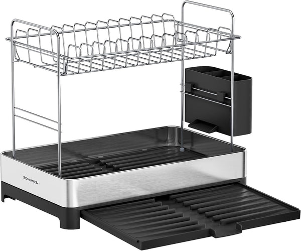 Dette 2-lags opvaskestativ i rustfrit stål er både korrosionsbestandigt og rustfrit. Med en kapacitet på op til 22 kg kan det nemt bære dine daglige køkkenting, og det robuste design sikrer langvarig brug.