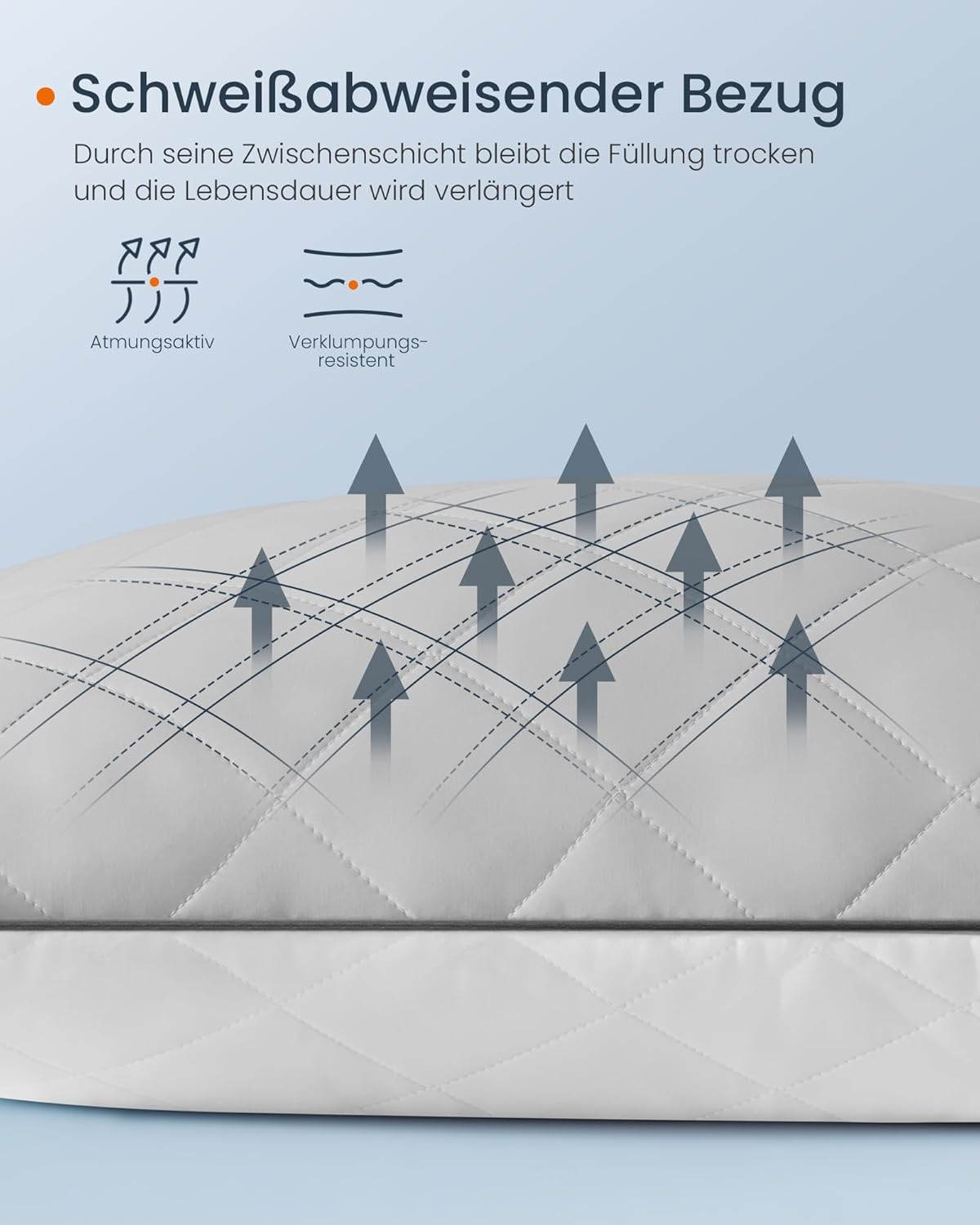 Sig farvel til nattesved og ubehagelige klumper i puden. Denne pude er udstyret med en innovativ svedresistent overflade, der effektivt leder fugt væk fra huden, så du kan sove tørt og komfortabelt hele natten. Dette smarte design forlænger ikke kun pudens levetid, men giver dig også en uforstyrret søvn, hvor du kan vågne op frisk og udhvilet.