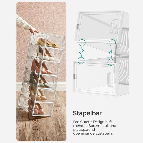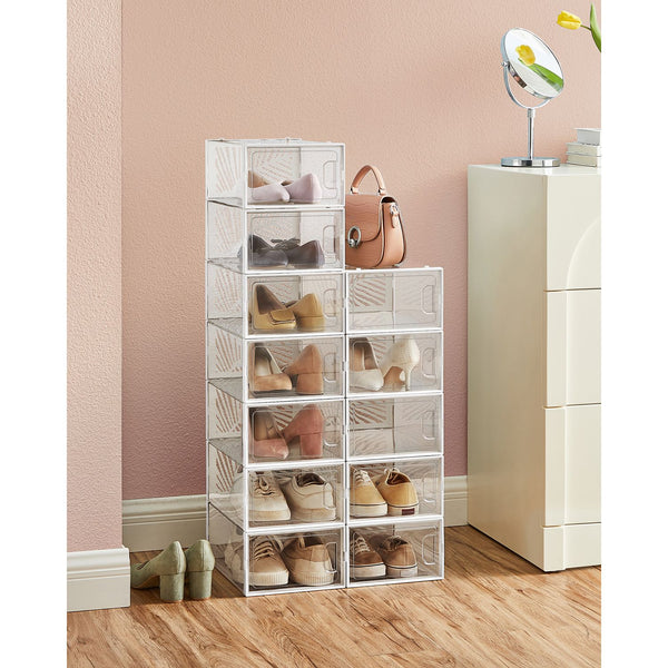 Disse gennemsigtige skobokse gør det nemt at finde det rette par. Ventilationshuller giver god luftcirkulation, så skoene holdes friske.