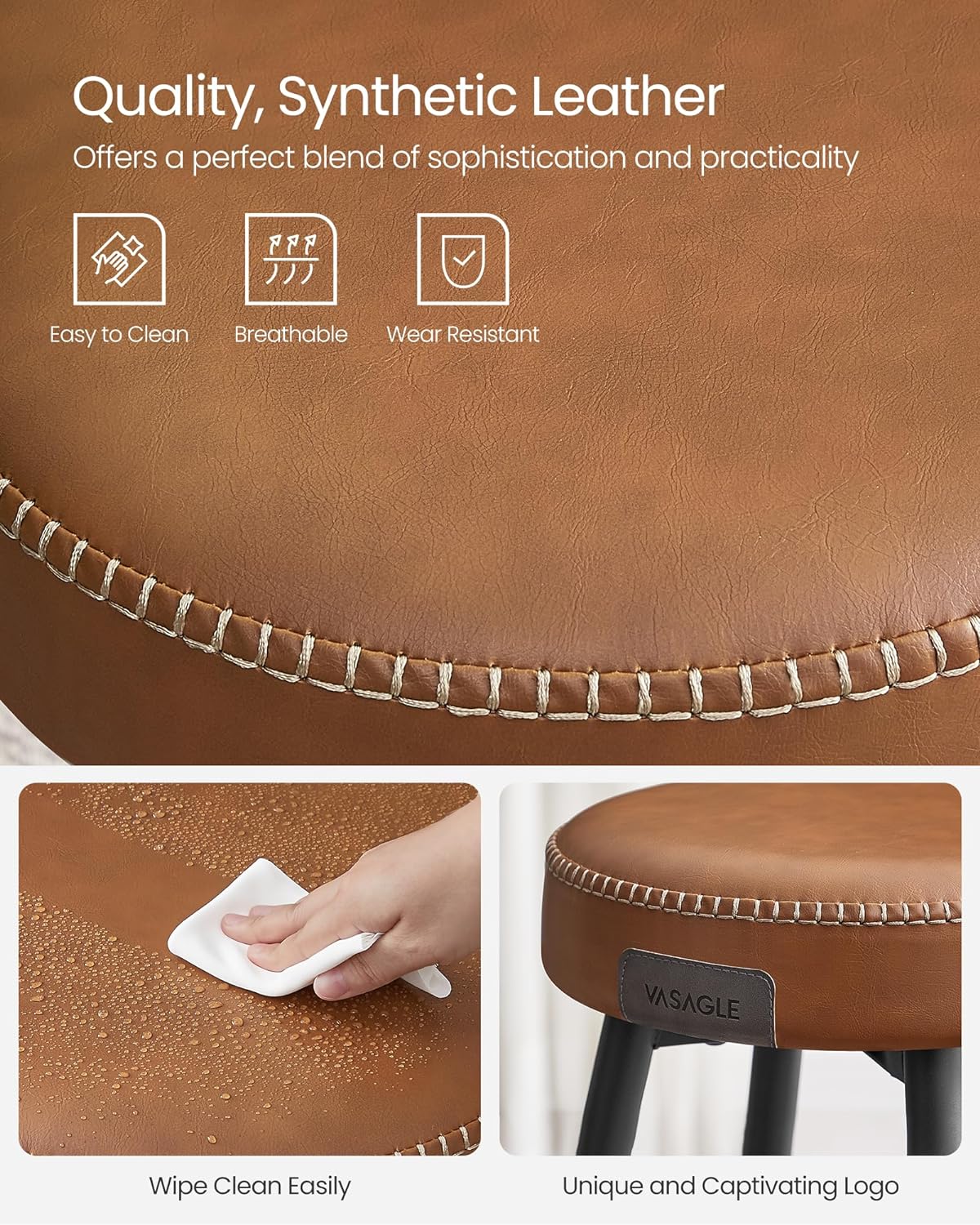 Med deres drejelige nivelleringsben tilbyder ECHO Collection barstole en stabil siddeplads, selv på ujævne overflader. De matte stålben beskytter dit gulv mod ridser og holder deres sofistikerede udseende intakt, selv ved daglig brug. Og skulle der opstå spild, kan det nemt tørres af takket være det vandtætte syntetiske læder. Disse stole er både praktiske og stilfulde, perfekte til det moderne hjem.