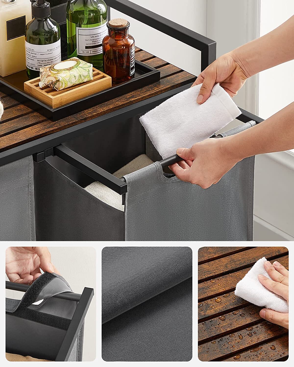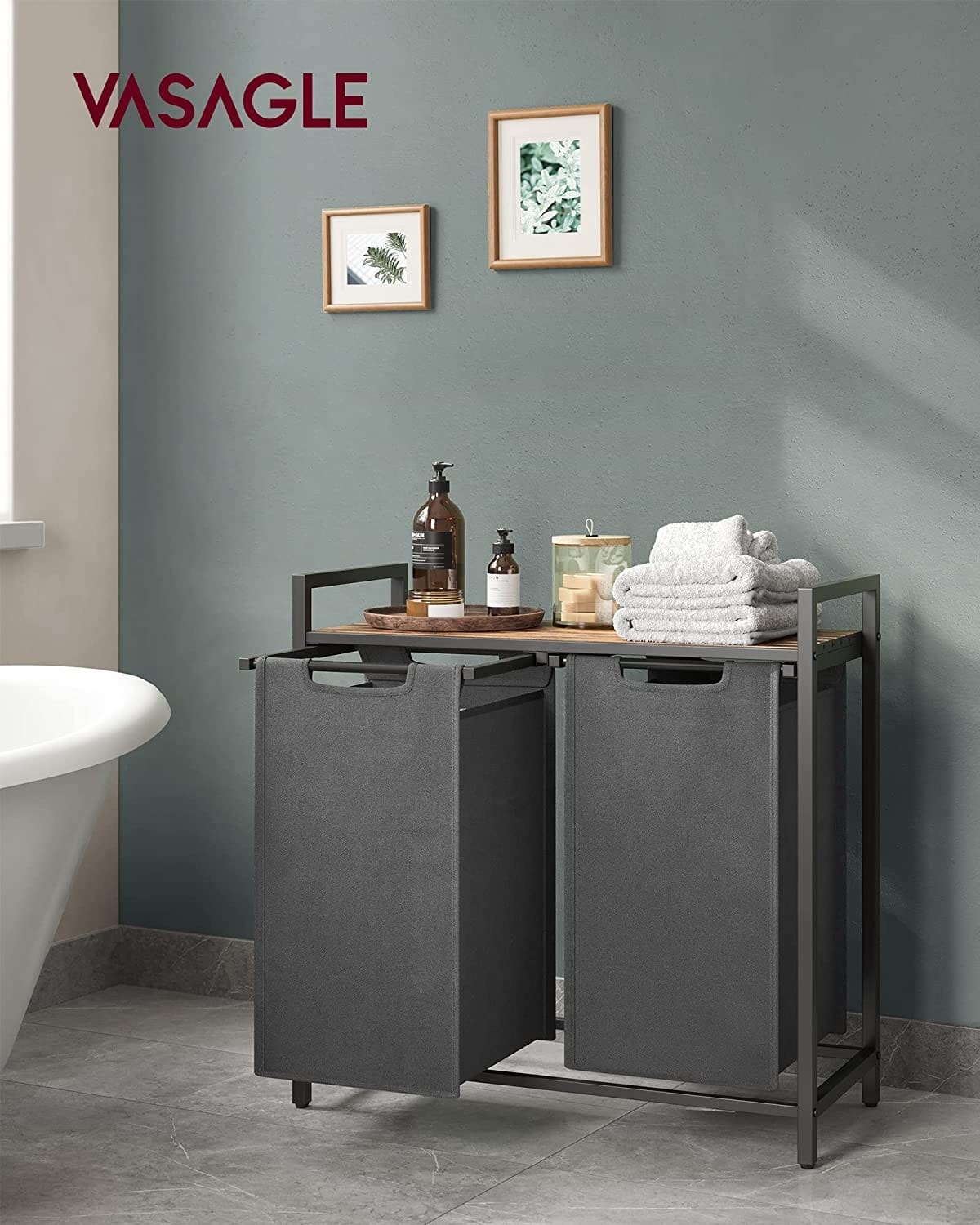 Denne elegante vasketøjskurv er fremstillet i en kombination af brune og grå farver og samler moderne stil og funktionalitet i én smuk pakke. Den leveres med to rum til at adskille rent og snavset tøj eller holde legetøj pænt - alt efter hvad du vælger! Den måler 73 x 33 x 72 cm og er rummelig nok til at opbevare mange ting uden at fylde for meget.