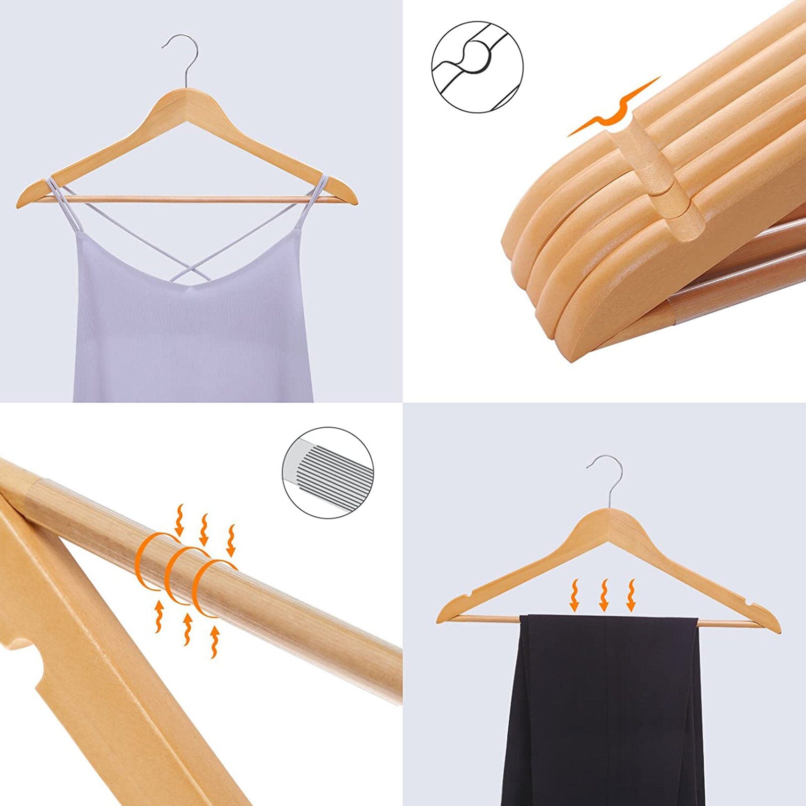 Lavet til at holde - Disse bøjler er fremstillet af holdbart ahorntræ af høj kvalitet og er stærke nok til at modstå vægten af dit yndlingstøj. metalkrogen er robust og sikker, så du kan hænge dit tøj op med tillid.