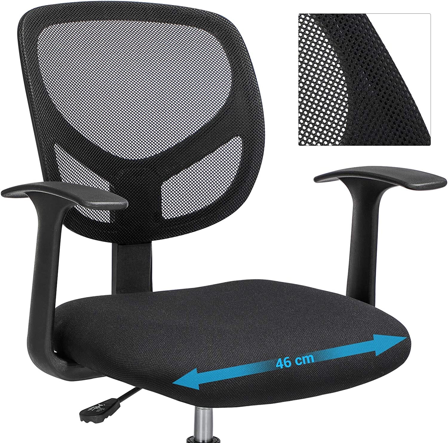 Optimeret sædehøjde: Vores skrivebordsstol kan justeres med 20 cm og passer til borde i alle højder - så du behøver ikke en konventionel stol!