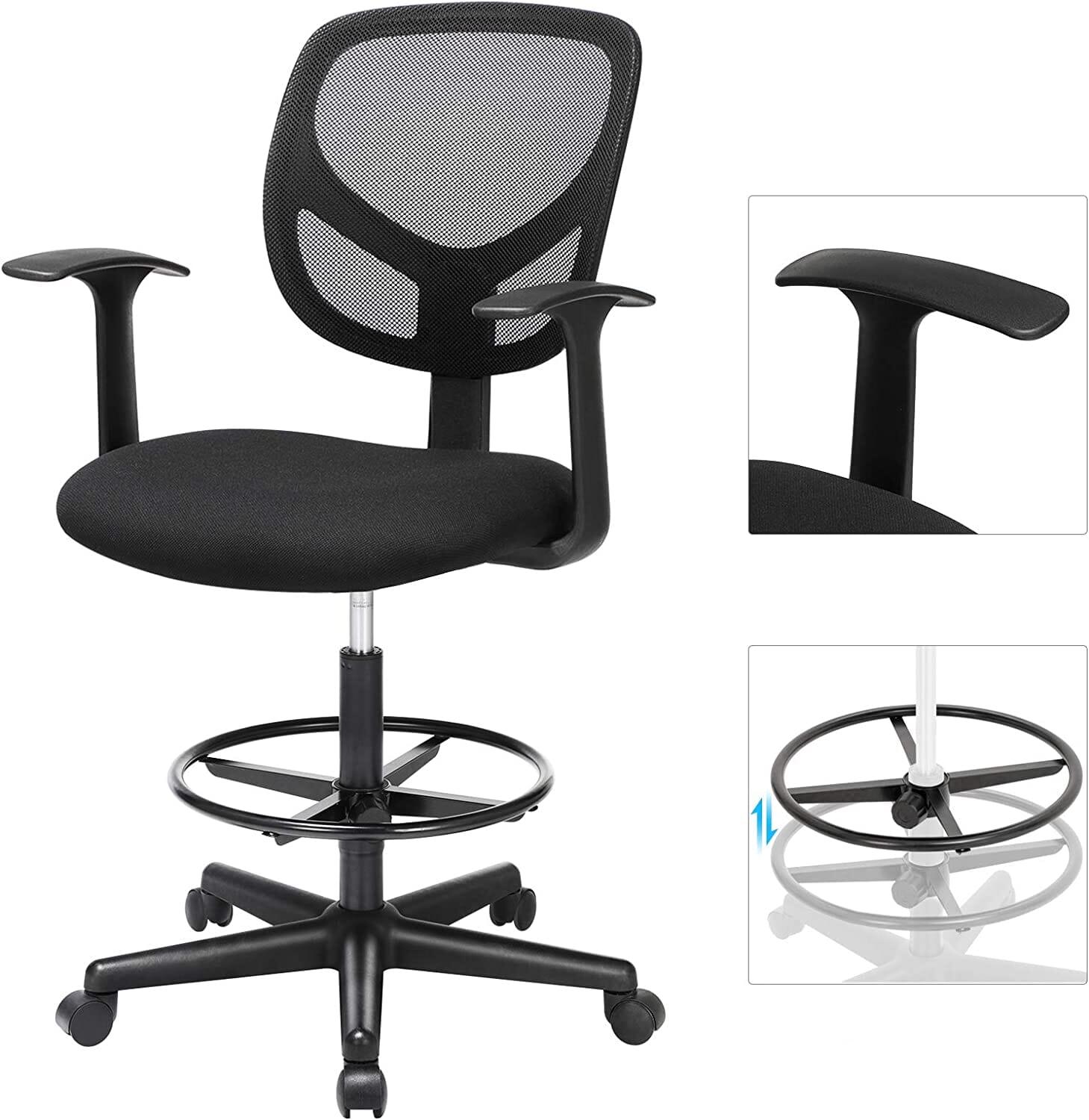 Højdejusterbar fodstøtte: Med den 360° robuste og højdejusterbare fodstøtte kan du hvile dine fødder komfortabelt i alle retninger.