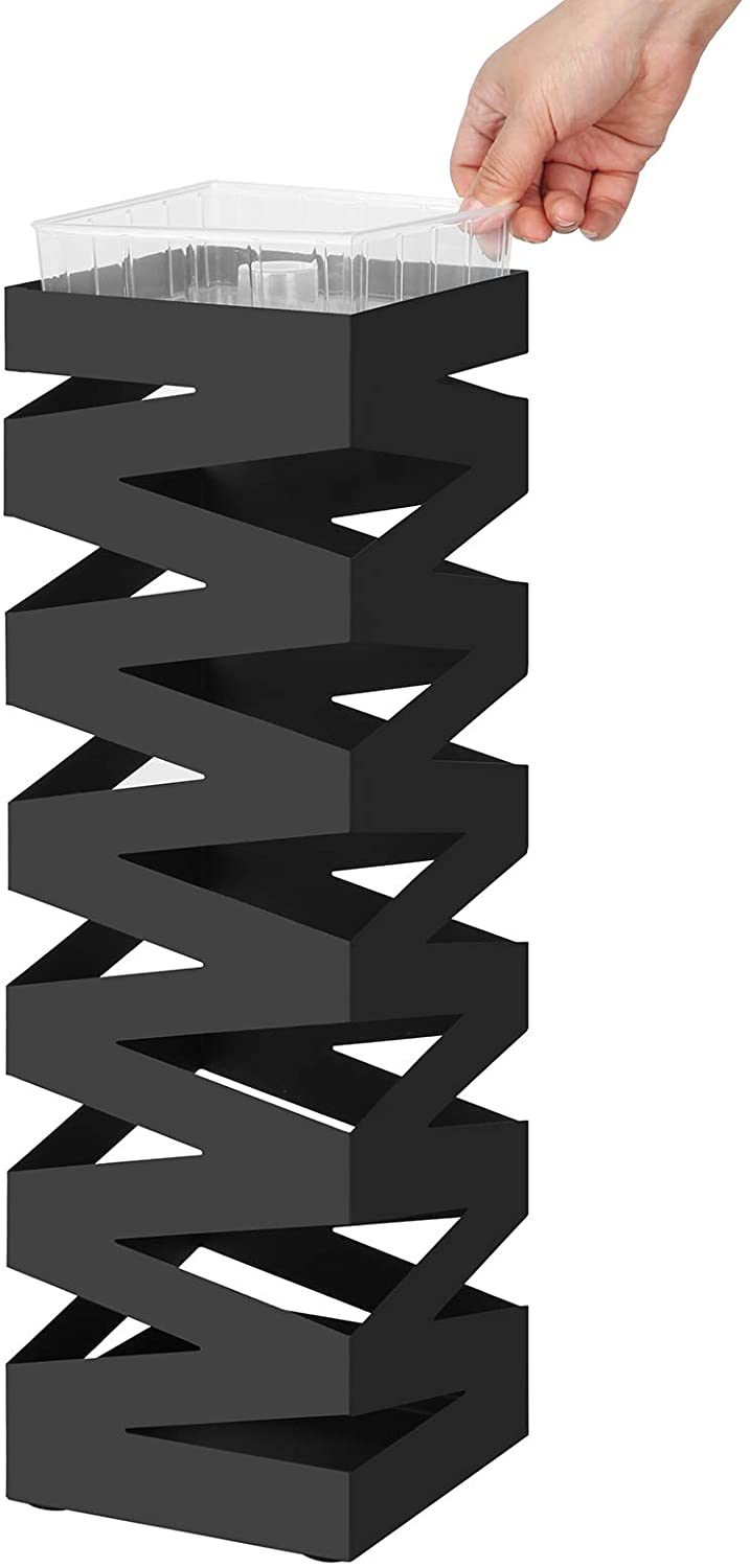 Moderne design - Unikt look med en aftagelig plastdrypbakke, forhindrer vand i at løbe ud og beskytter dine gulve mod fugt. 2 kroge til ophængning af foldeparaply, hvilket gør den perfekt til ethvert hjem eller kontor.