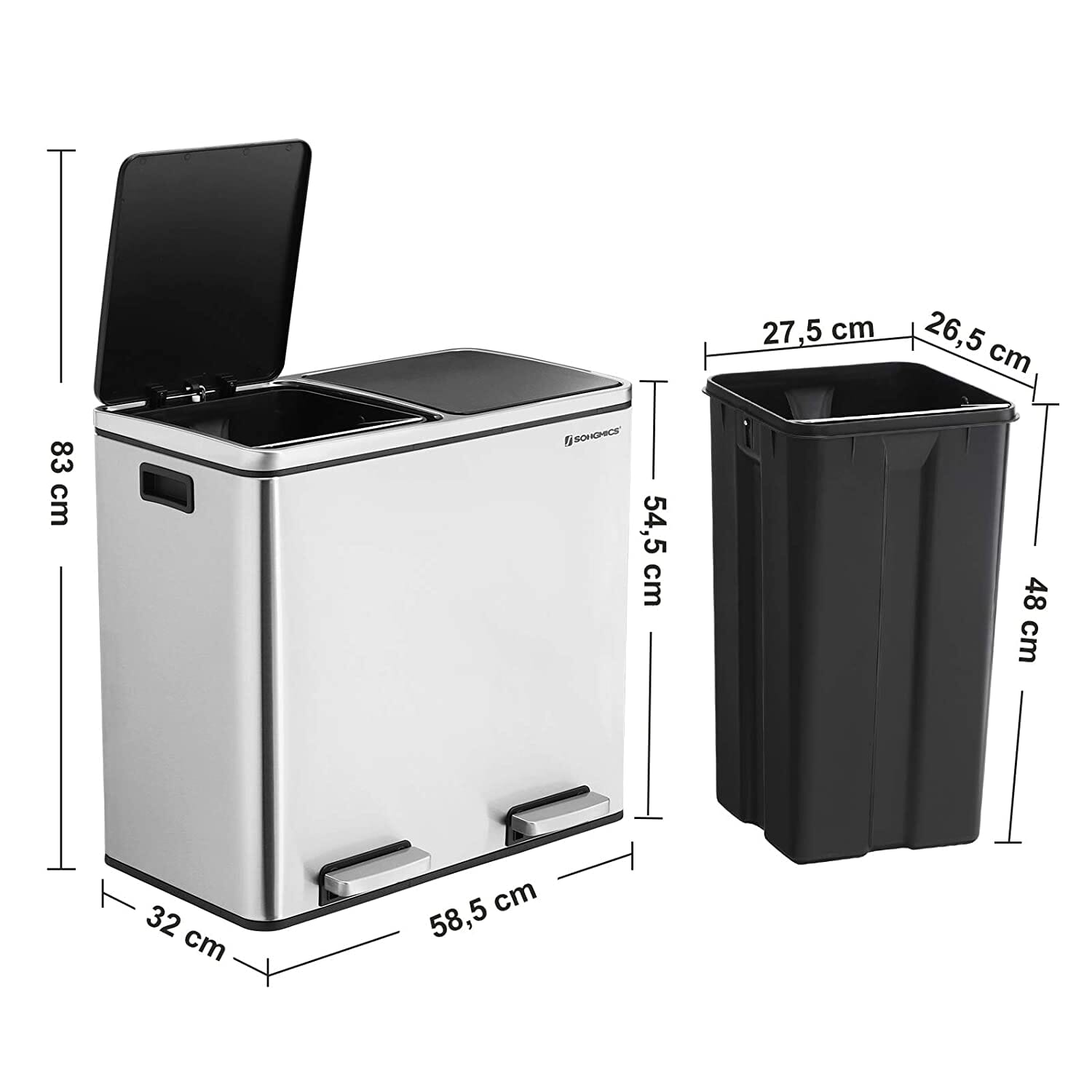 Klar i ét trin: Med sin kapacitet på 48 l, de aftagelige spande og det praktiske design er denne skraldespand perfekt til hurtig og nem bortskaffelse af affald. Den passer perfekt ind i ethvert hjørne af dit køkken - uden problemer!