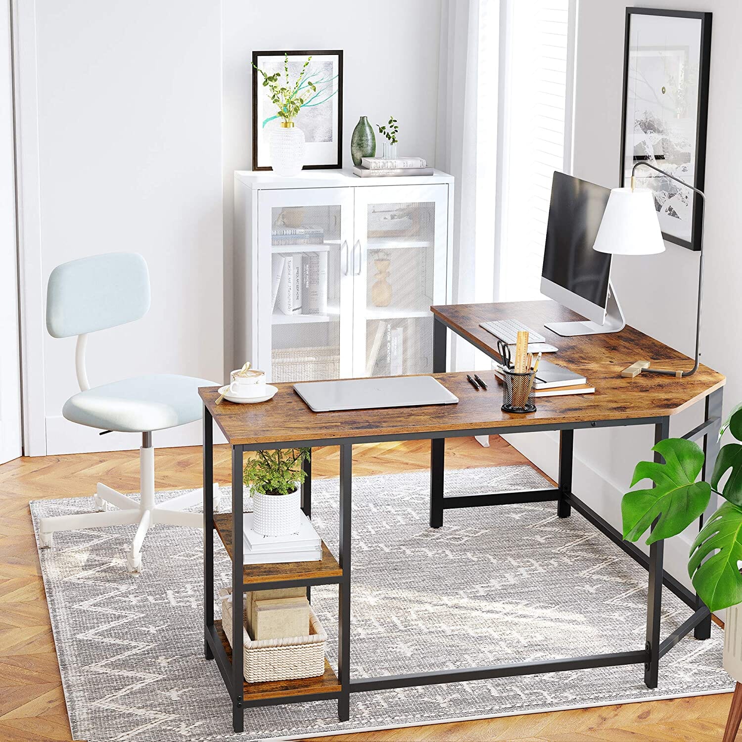 Fremstillet af høj kvalitet spånplade og stålstel, og forstærket med ekstra stænger til de øvre hjørner, dette skrivebord har en solid struktur, der kan holde op til 50 kg, og tilbyder dig en pålidelig og holdbar arbejdsplads.