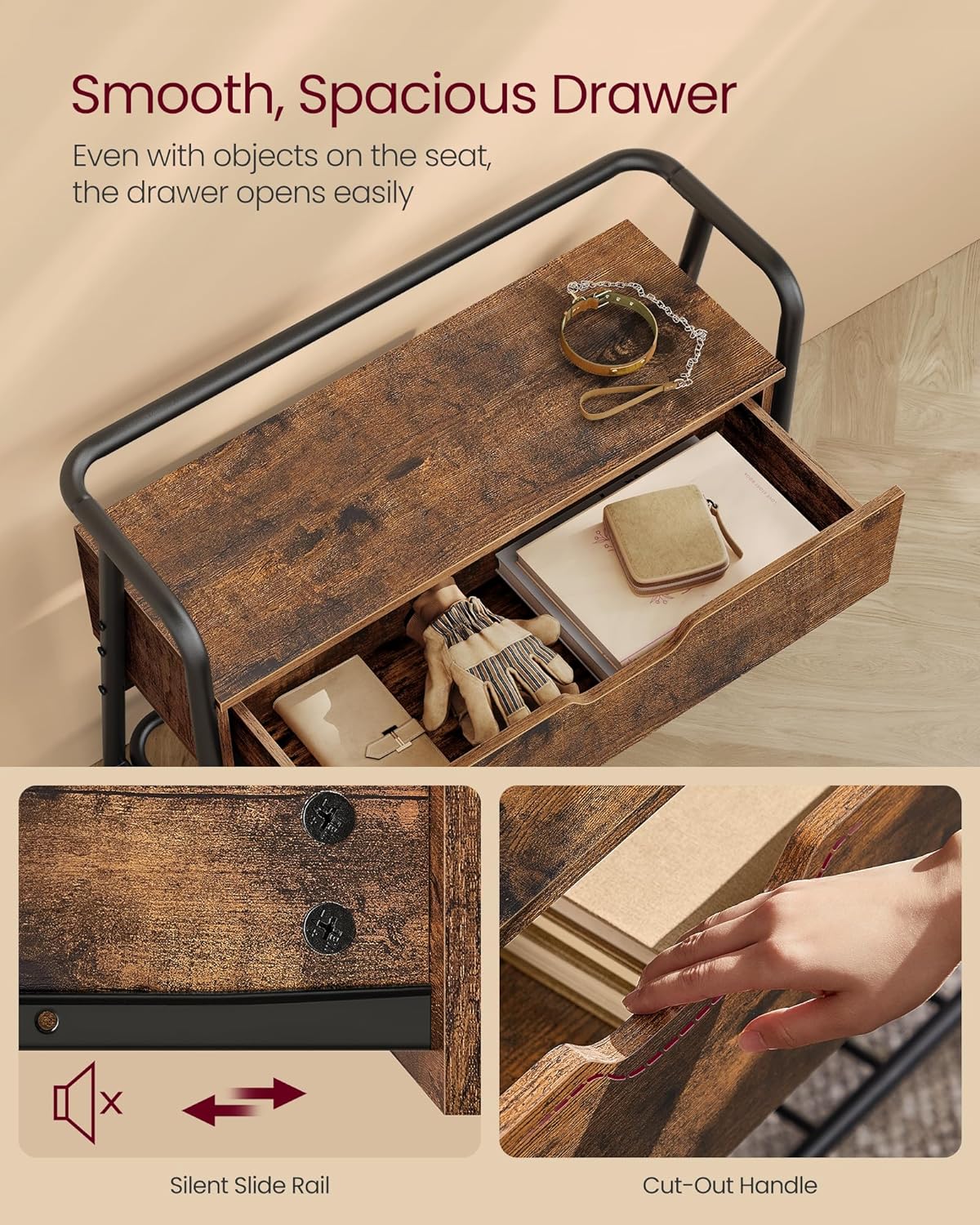 Opbevaringsbænk med Rummelige Sektionshylder og Skuffe