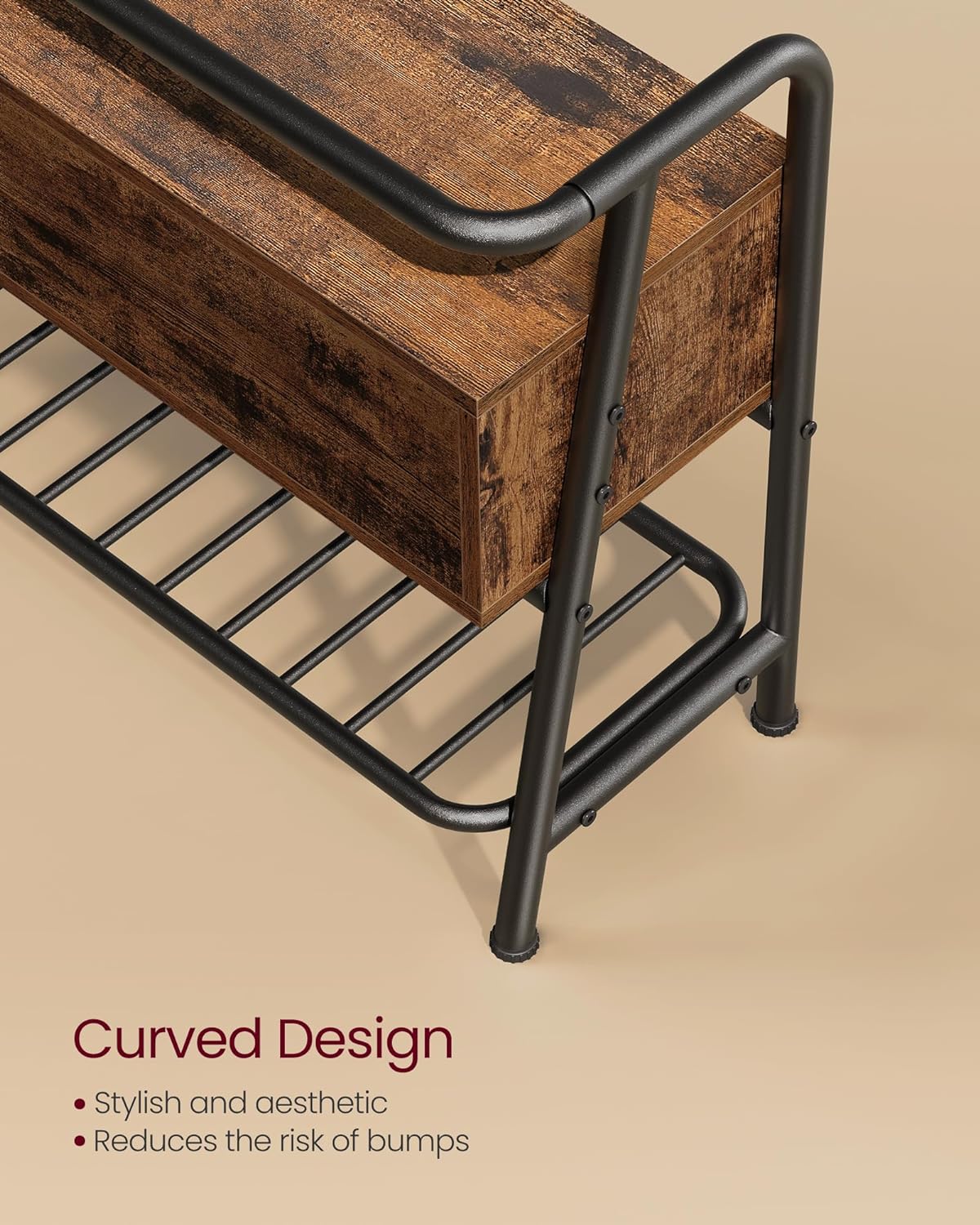 Bænkens fine kurver tilføjer et raffineret præg til dit hjem og beskytter mod skarpe kanter. Med et rustikt design i brun og sort passer den flot i entreen, stuen eller ved sengen, hvilket giver dit hjem et stilfuldt og organiseret look.