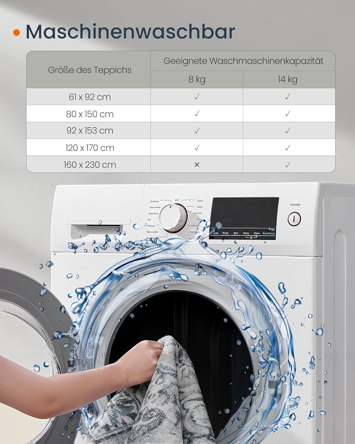 Dette tæppe er designet til at være ekstremt slidstærkt og beholder sin blødhed, selv efter langvarig brug uden at fælde. Det kan vaskes i maskine, hvilket gør det let at vedligeholde og holde rent. Selv efter flere vaske vil det bevare sin kvalitet og udseende, hvilket gør det til en praktisk og holdbar løsning til din indretning.