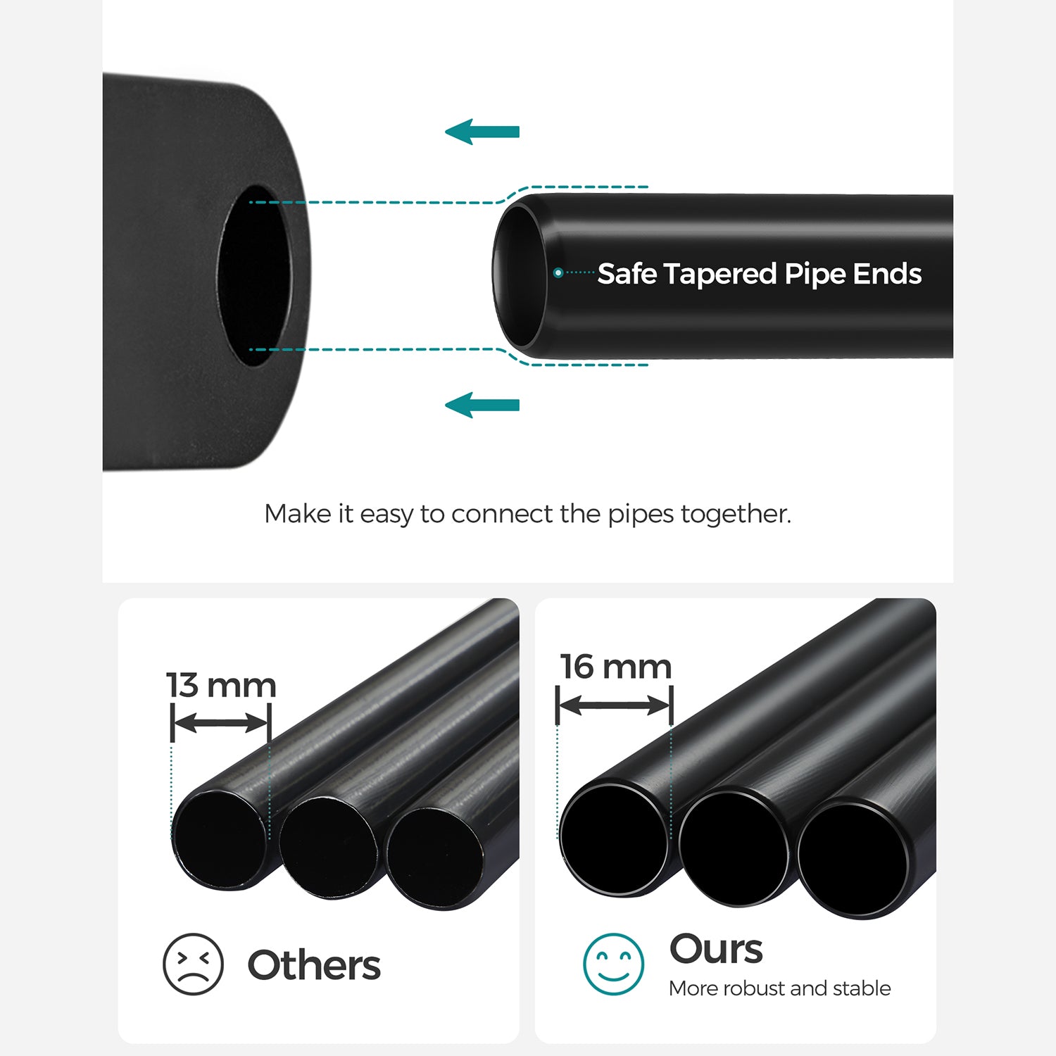 Spar tid med den enkle samling af dette tøjstativ. Du behøver ikke værktøj, da de metalrør let sættes sammen med plastforbindelser. På få minutter har du et fuldt fungerende tøjstativ klar til brug. Denne lette samling gør det nemt at tilføje en ny opbevaringsløsning til dit hjem uden besvær.