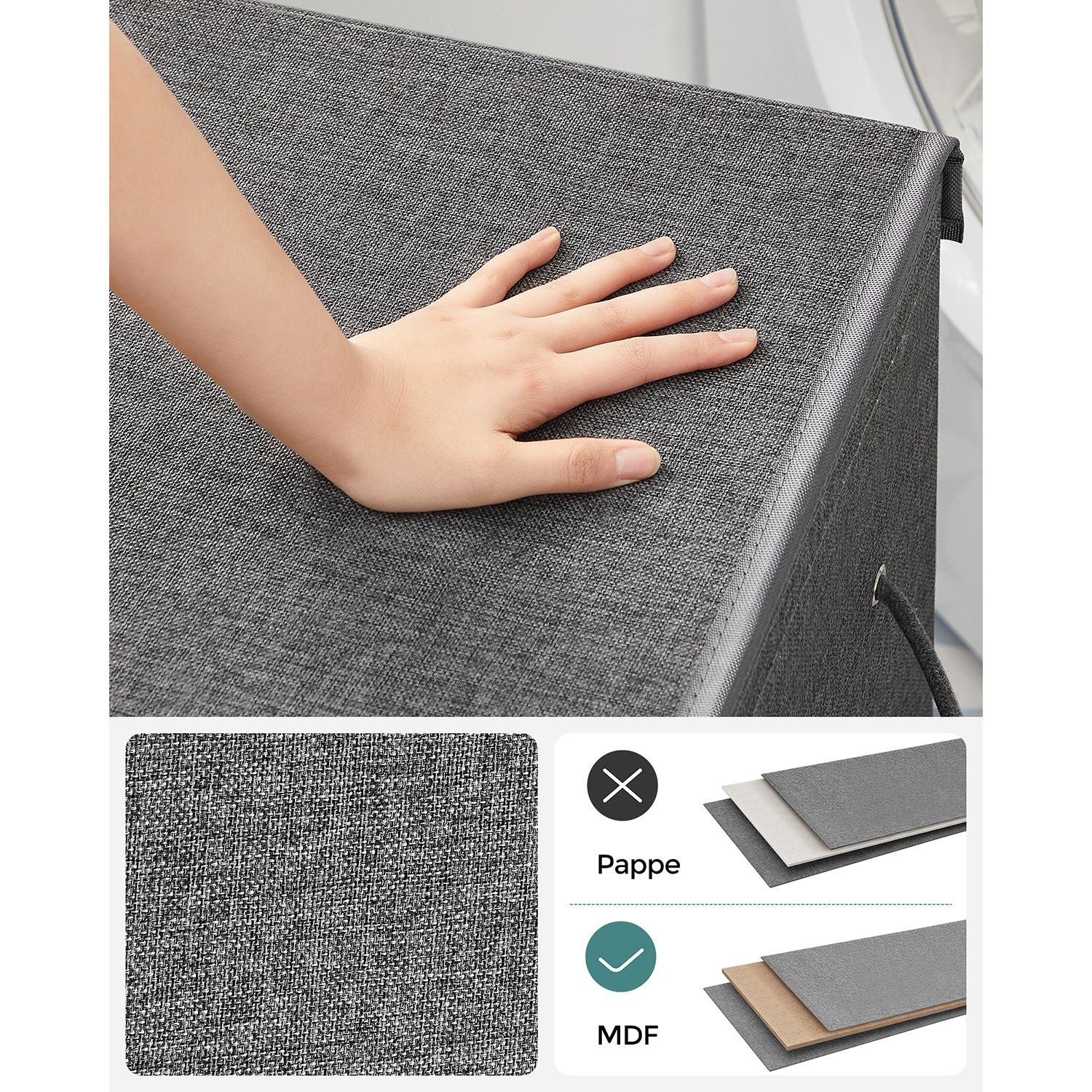 Med målene 60 x 36 x 66 cm (L x B x H) tilbyder denne vasketøjskurv med låg lavet af stof, der ligner linned, 142L til opbevaring af dit snavsetøj og hjælper med at holde dit hjem i perfekt orden. Det er den ideelle løsning til at skjule vasketøjet og holde dit rum ryddeligt.