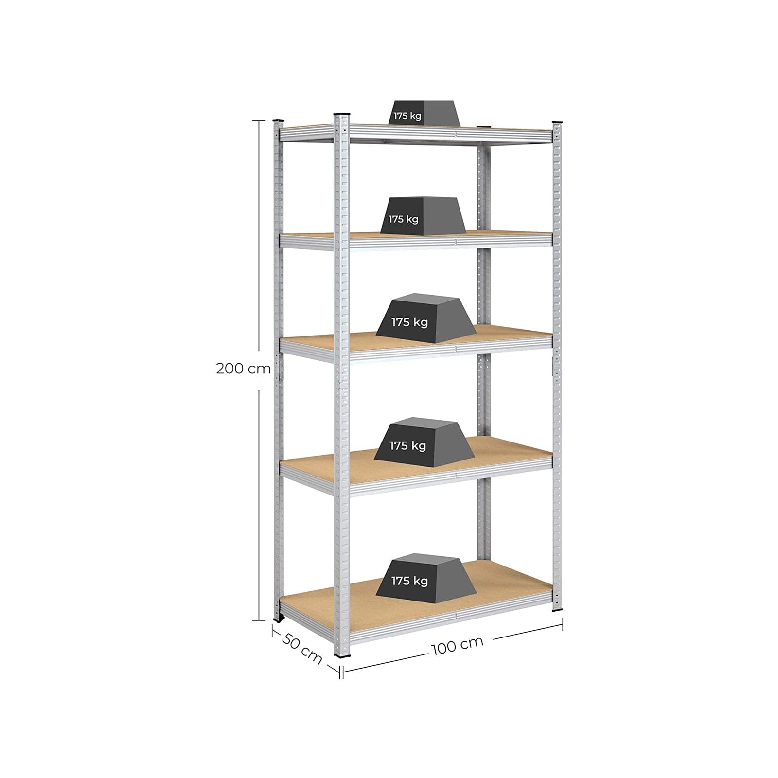 - Vægt af hver hylde: 120 kg