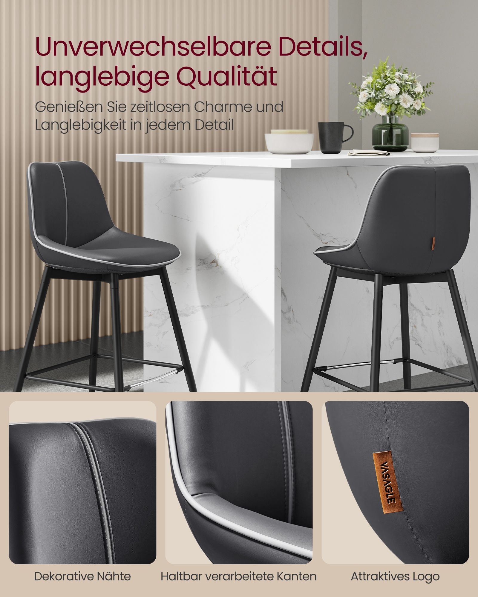 Tilfør dit hjem et strejf af moderne elegance med dette sæt af 2 barstole. De raffinerede samlingsdetaljer og de tilspidsede ben skaber et sofistikeret udtryk, der passer perfekt til enhver indretning. Disse barstole løfter æstetikken i dit rum, hvad enten de står i køkkenet, ved baren eller i spisestuen.