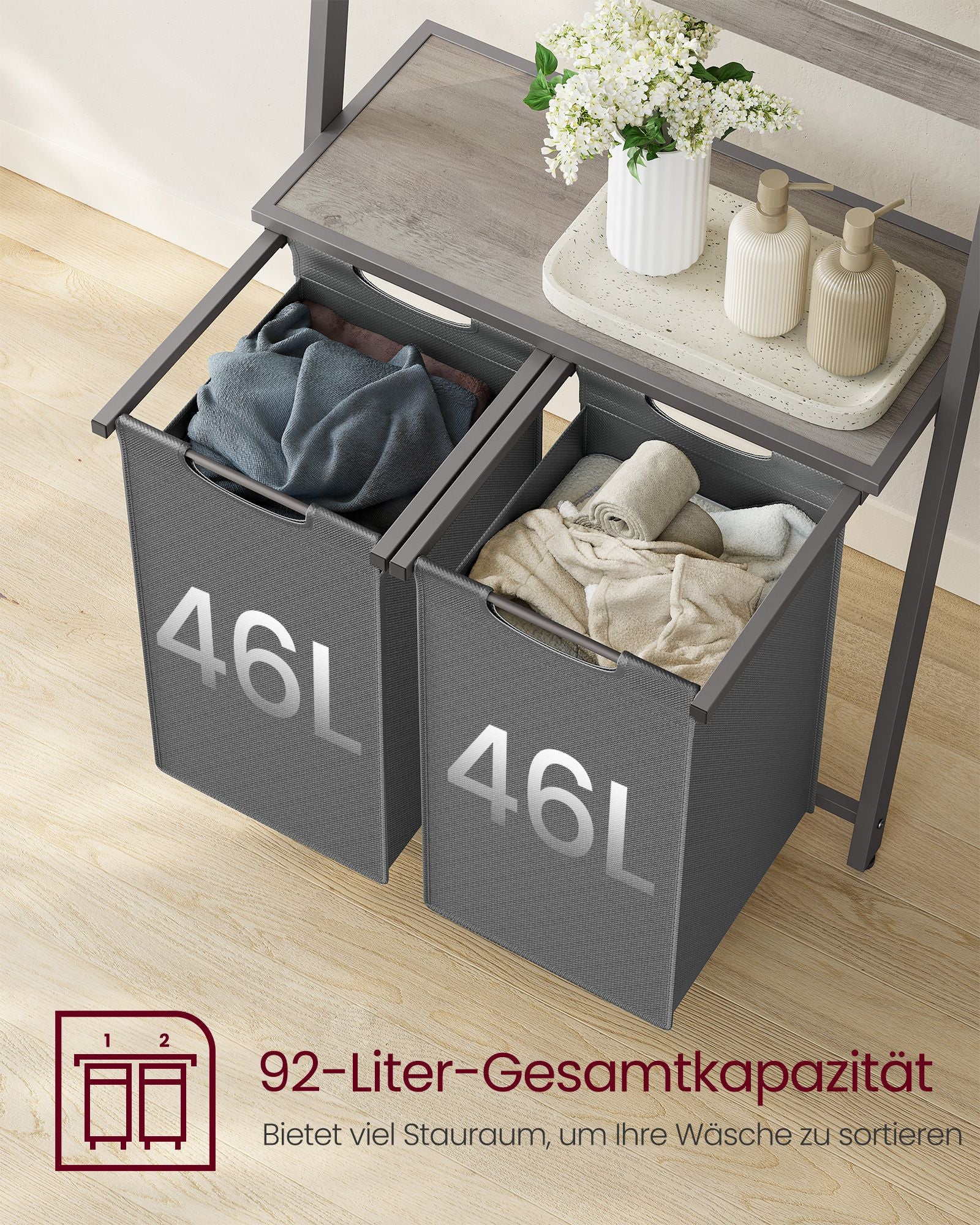 Med en samlet kapacitet på 92 liter (46 liter pr. rum) kan denne rummelige vasketøjskurv nemt rumme hele familiens vasketøj for en uge. De 2 separate rum hjælper dig med at opbevare vasketøjet i en ordentlig rækkefølge, så du hurtigt kan finde det, du skal vaske.