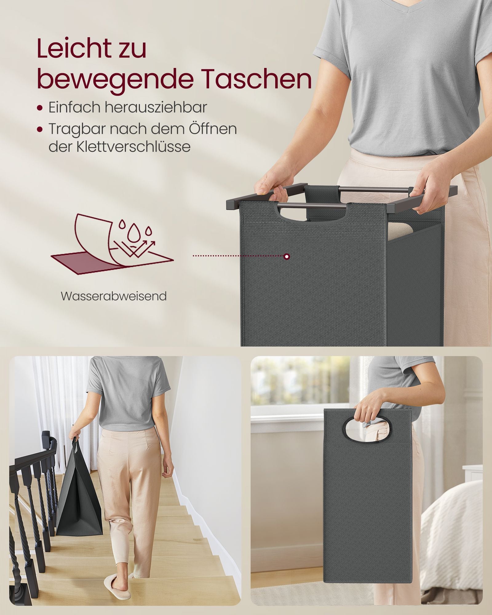 Takket være de praktiske velcro-fastgørere kan du nemt fjerne de stofposer og tage dem med til vaskemaskinen. Poserne er lavet af premium Oxford-stof og er vandafvisende, hvilket sikrer, at dit vasketøj forbliver tørt og nemt at rengøre.