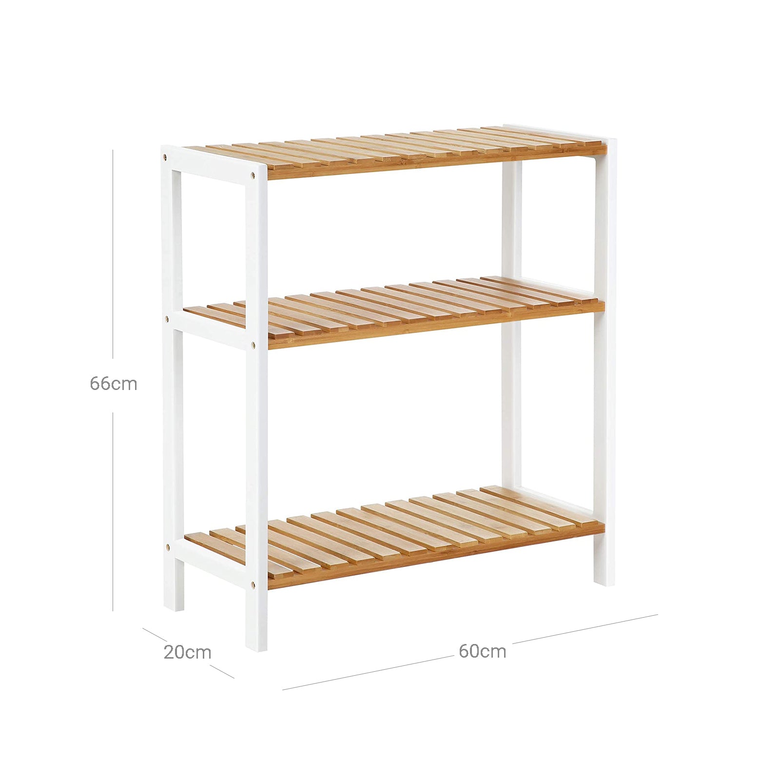 Har du brug for en opbevaringsløsning til kaosset derhjemme? Prøv denne 3-lags bambushylde! Den vil bringe orden i tingene samtidig med, at den tilfører dit hjem en frisk appel med en naturlig og hvid farvekombination.
