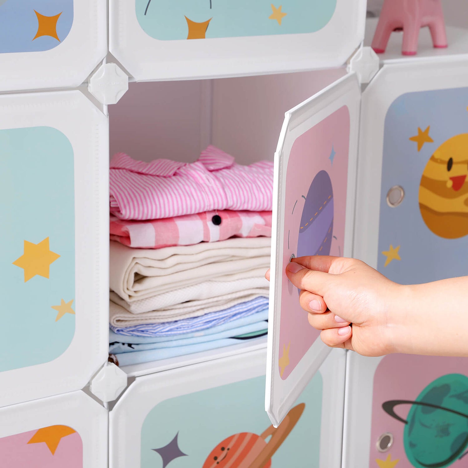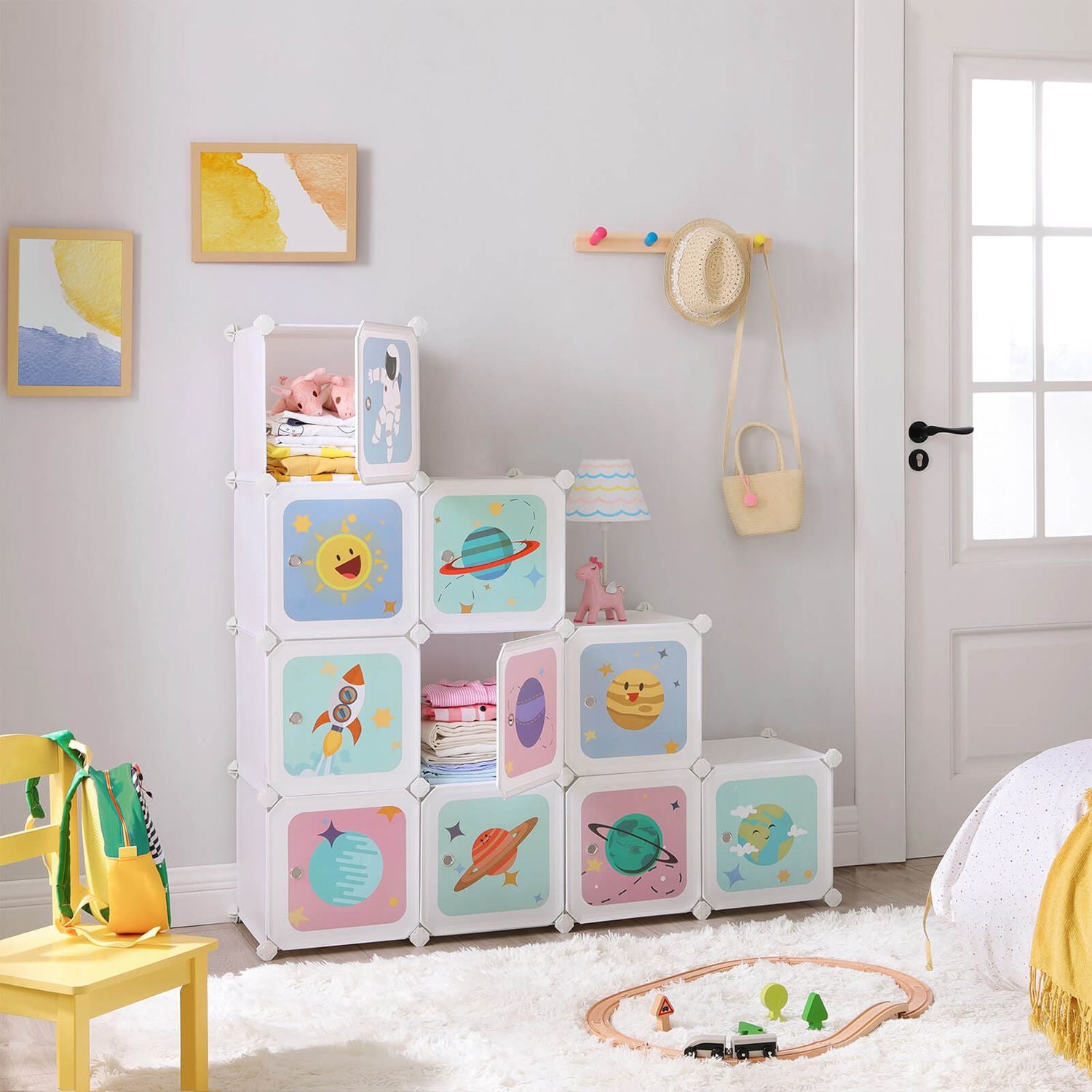 Med 10 rummelige kubekasser, hver med en kapacitet på 10 kg, kan børnene opbevare alt fra legetøj til bøger og tøj. En stabil konstruktion og inkluderet anti-tip kit sikrer, at kasserne står fast, uanset hvor de placeres.