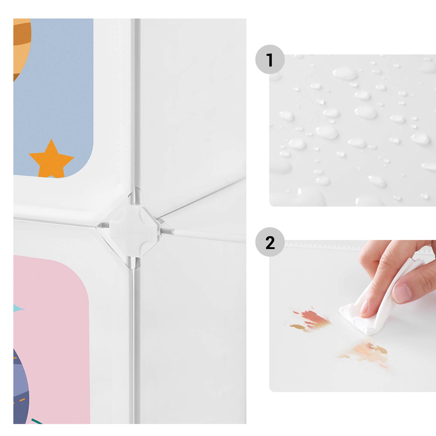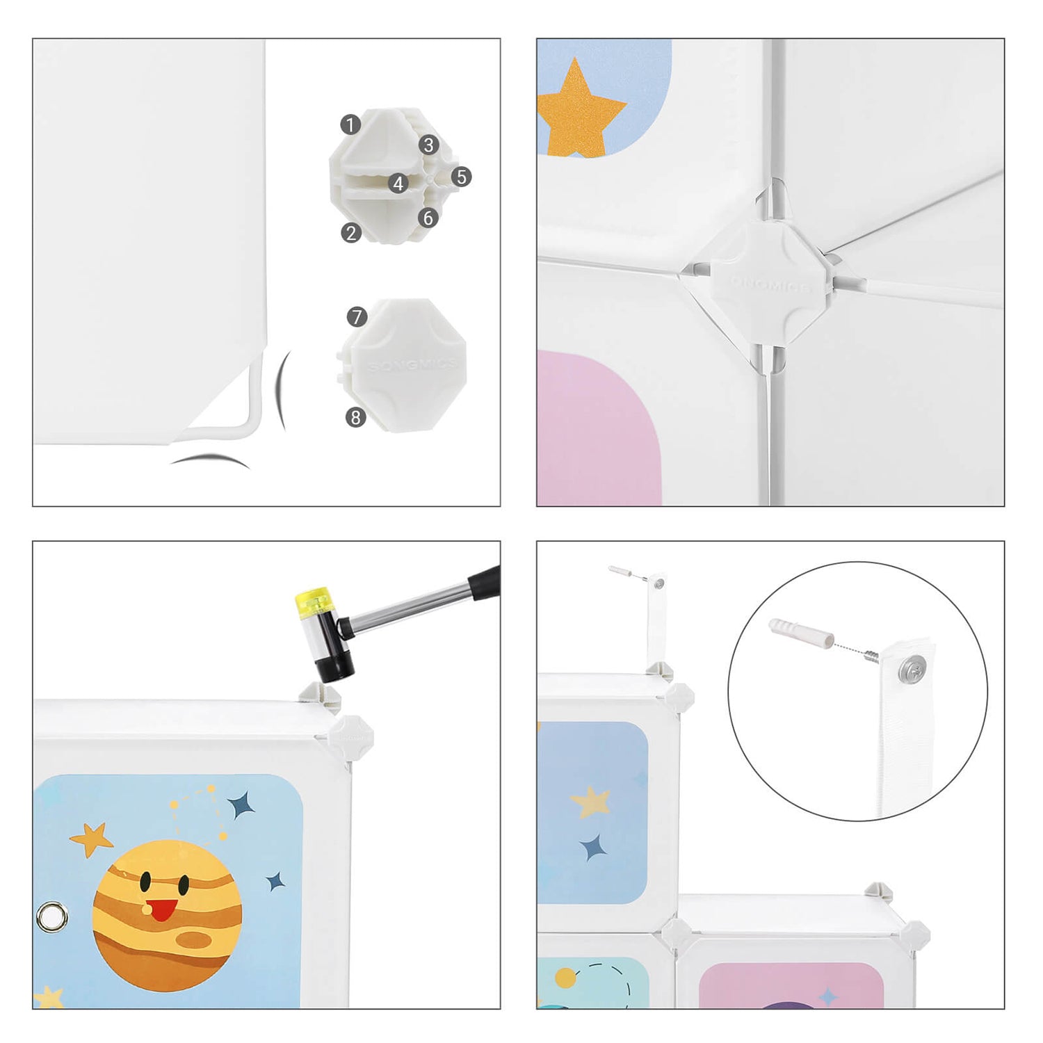 Monteringen er enkel med det medfølgende gummihammer og klare instruktioner. Lad børnene hjælpe med at bygge opbevaringsenheden og lær dem gode oprydningsvaner i en tryg og sikker opbevaringsløsning.