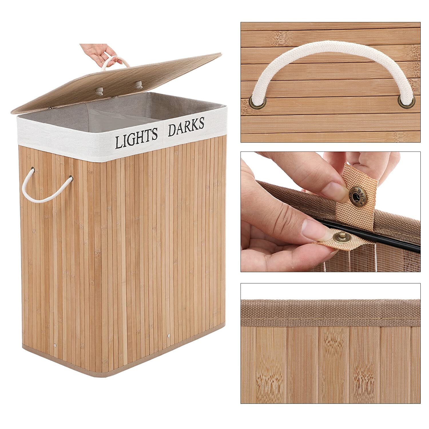 100 liter kapacitet til sortering af tøj - Denne kurv giver rigelig plads til alt dit vasketøj med en let vaskbar foringspose med to rum til sortering efter farver. Du kan bare tage inderposen direkte til vaskemaskinen, når du har brug for det!