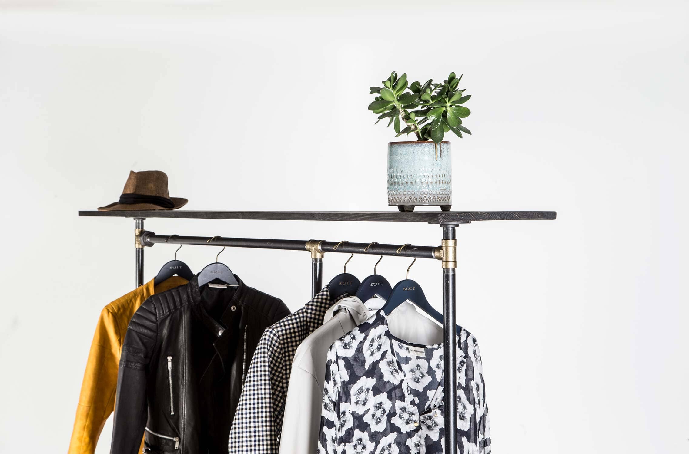 Glem ikke bøjler eller kroge til dit tøjstativ