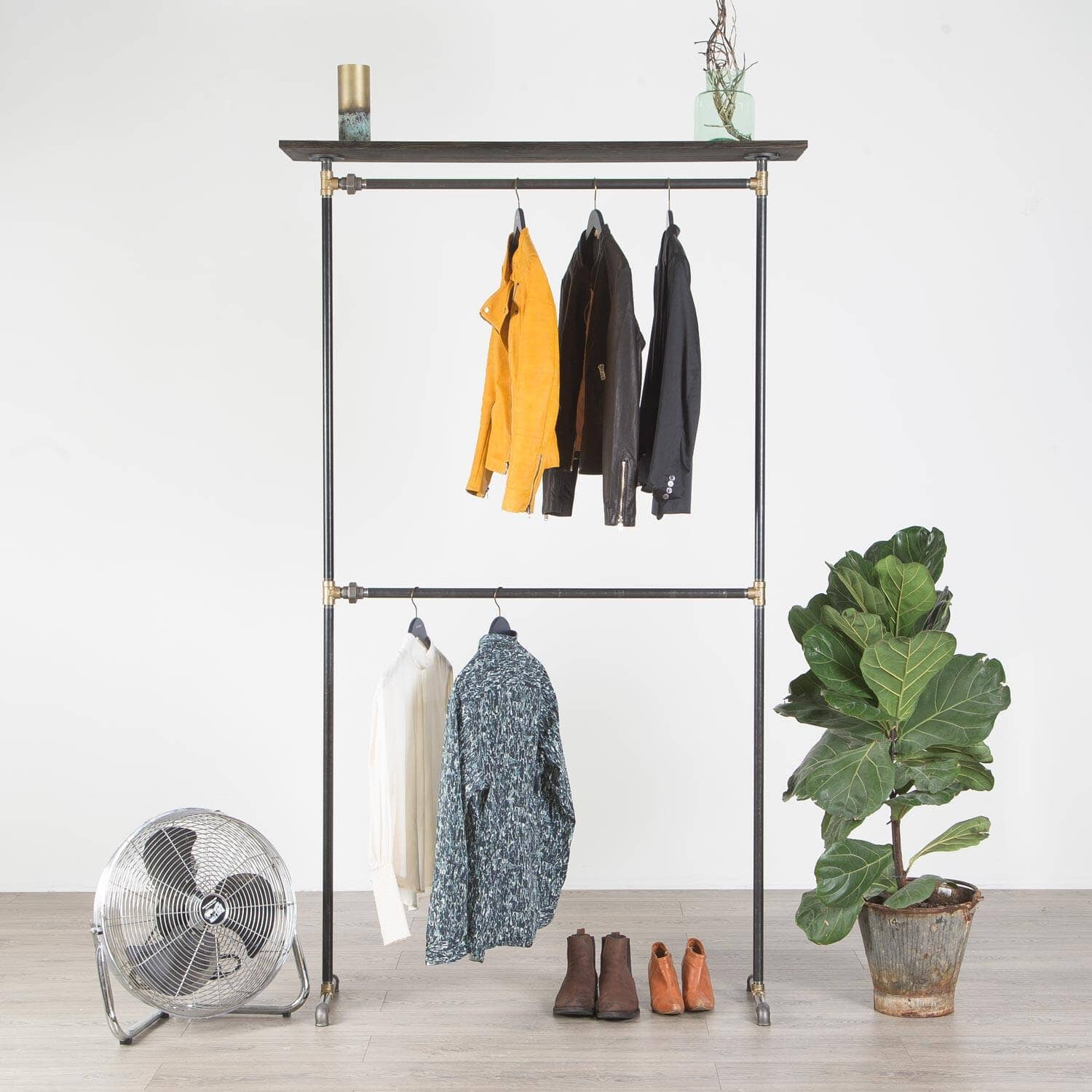 Vores tøjstativer i vandrør er bygget til at vare i mange år. Det er konstrueret med en robust bøjlestang af vandrør, der kan bære mere end 100 kilo tøj. Du behøver aldrig mere bekymre dig om at dit tøj og tilbehør vælter eller at stangen bøjer. Dette tøjstativ er lavet til at opfylde dine opbevaringsbehov i årevis.