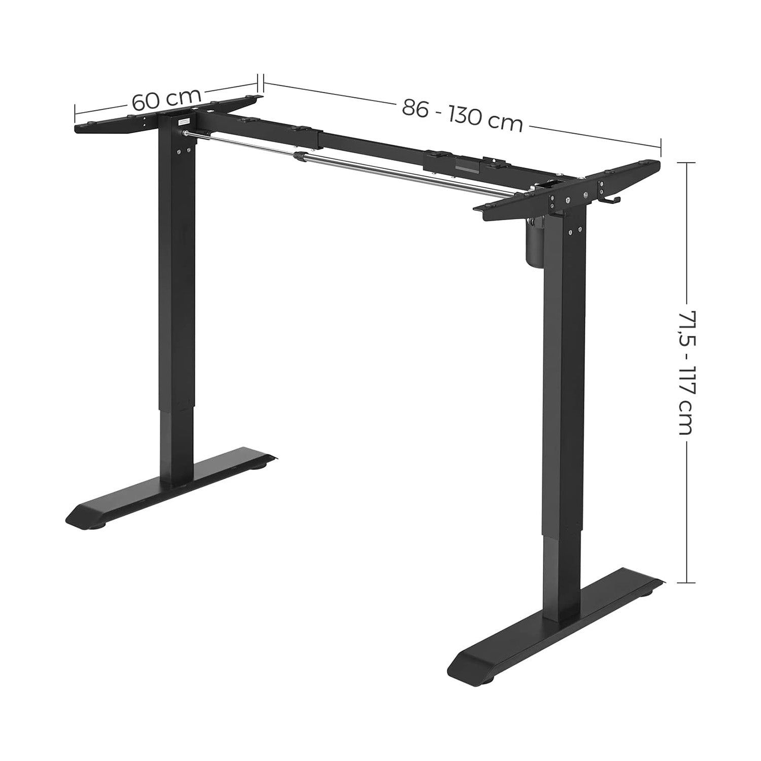 Det robuste stålstel er justerbart i længden fra 86 til 135 cm, hvilket gør det kompatibelt med en bred vifte af bordplader. Det passer til bordplader mellem 110 og 160 cm lange og 60 til 80 cm brede. Denne fleksibilitet gør det muligt for dig at finde den perfekte størrelse til dit behov, uanset hvilken bordplade du vælger.