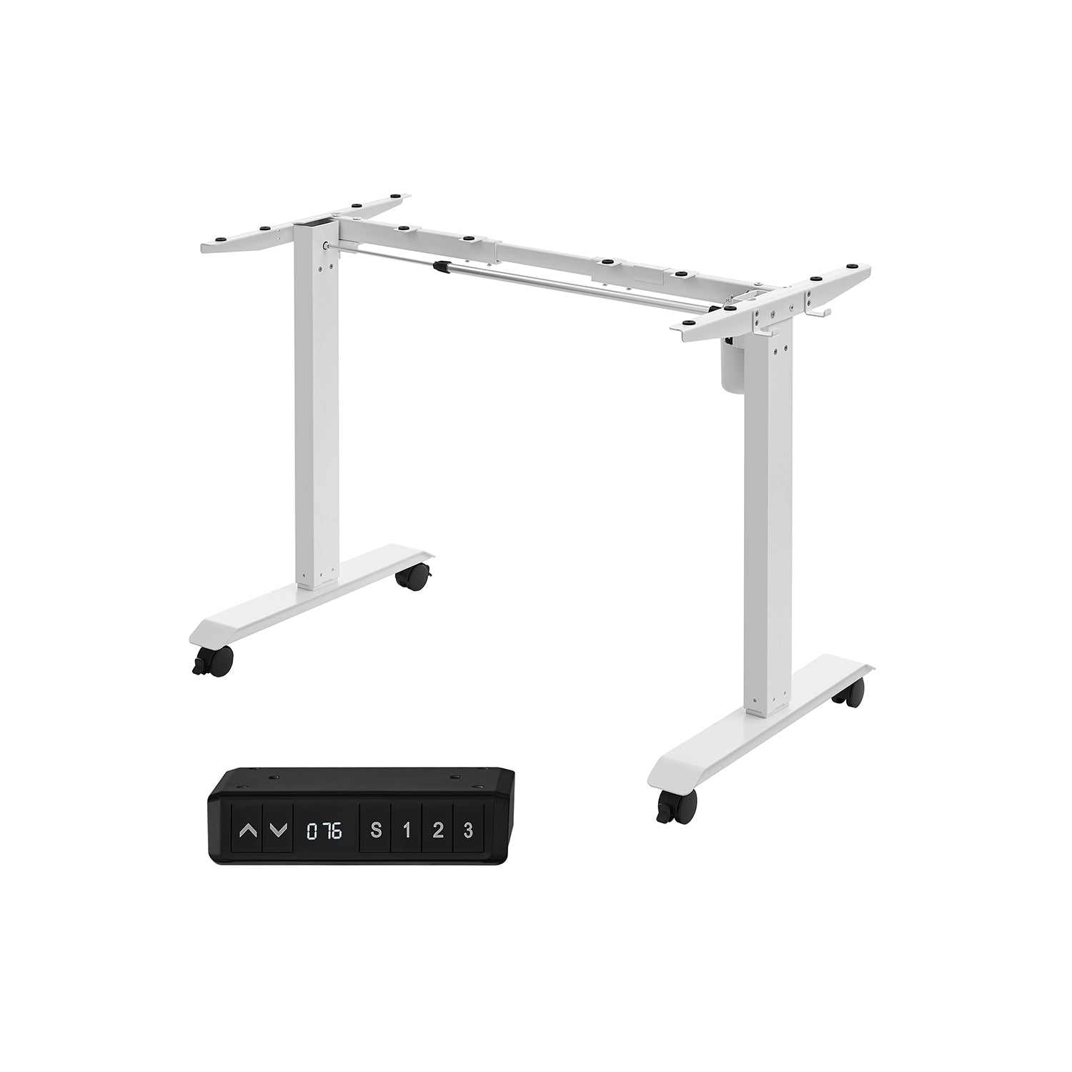 Dette skrivebords stel er lavet af robust stål, hvilket sikrer en stabil konstruktion, der kan bære op til 80 kg. De justerbare fødder kompenserer for ujævnheder på gulvet og beskytter mod ridser. For yderligere fleksibilitet kan fødderne nemt udskiftes med hjul for lettere transport og mobilitet. Dette stel kombinerer styrke med praktisk anvendelighed, hvilket gør det til et ideelt valg for både hjemmekontorer og professionelle arbejdspladser.