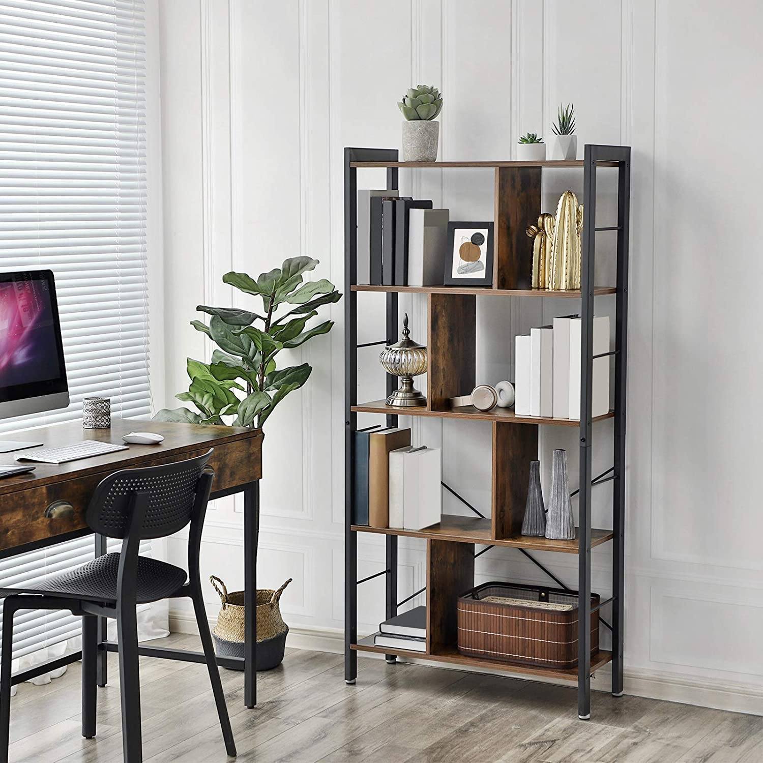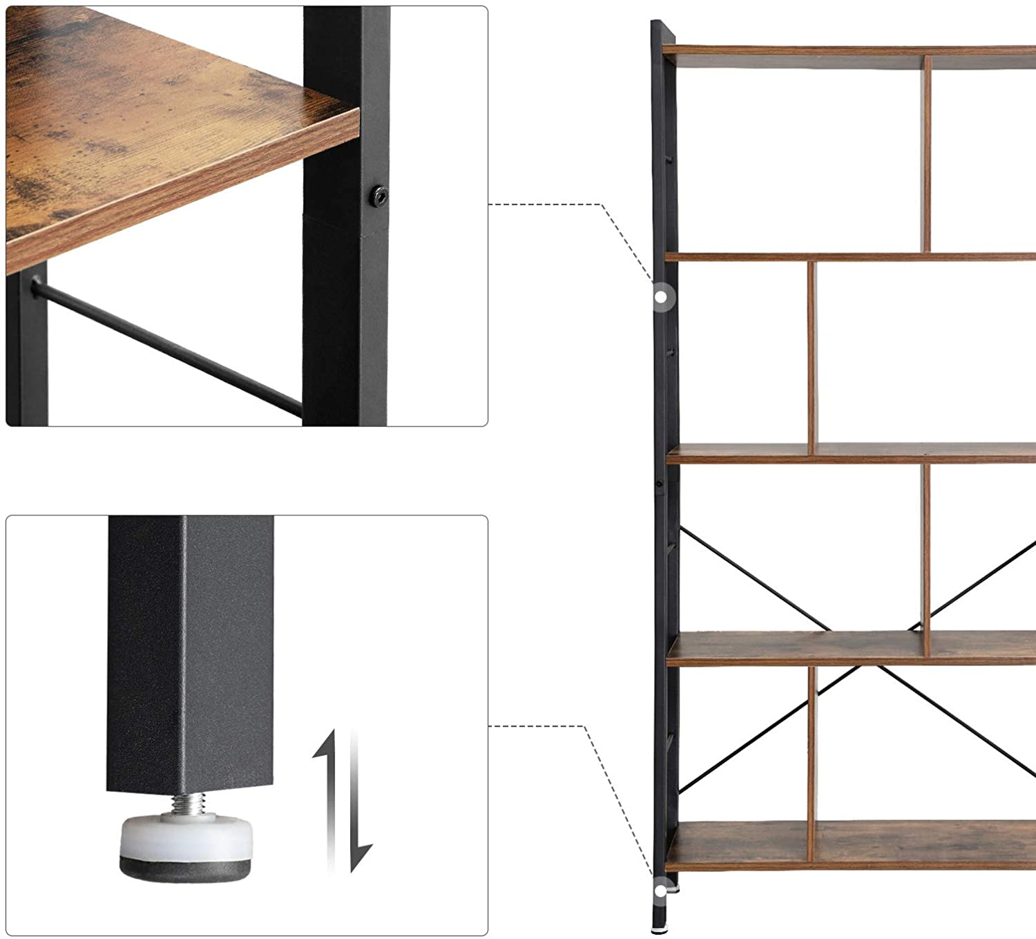Victor-bogreolen er perfekt til at udstille bøger, dokumenter, legetøj eller dekorative genstande. Den har en metalramme og spånplade med melaminoverflade i rustik træfarve og -struktur for holdbarhed og varig kvalitet.